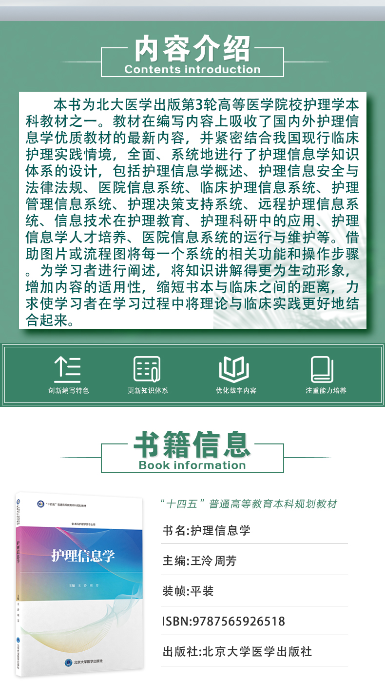 护理信息学 王泠 周芳主编 十四五普通高等教育本科规划教材 第3轮教材 供本科护理学类专业用 北京大学医学出版社9787565926518