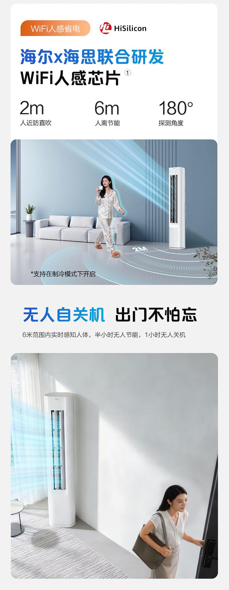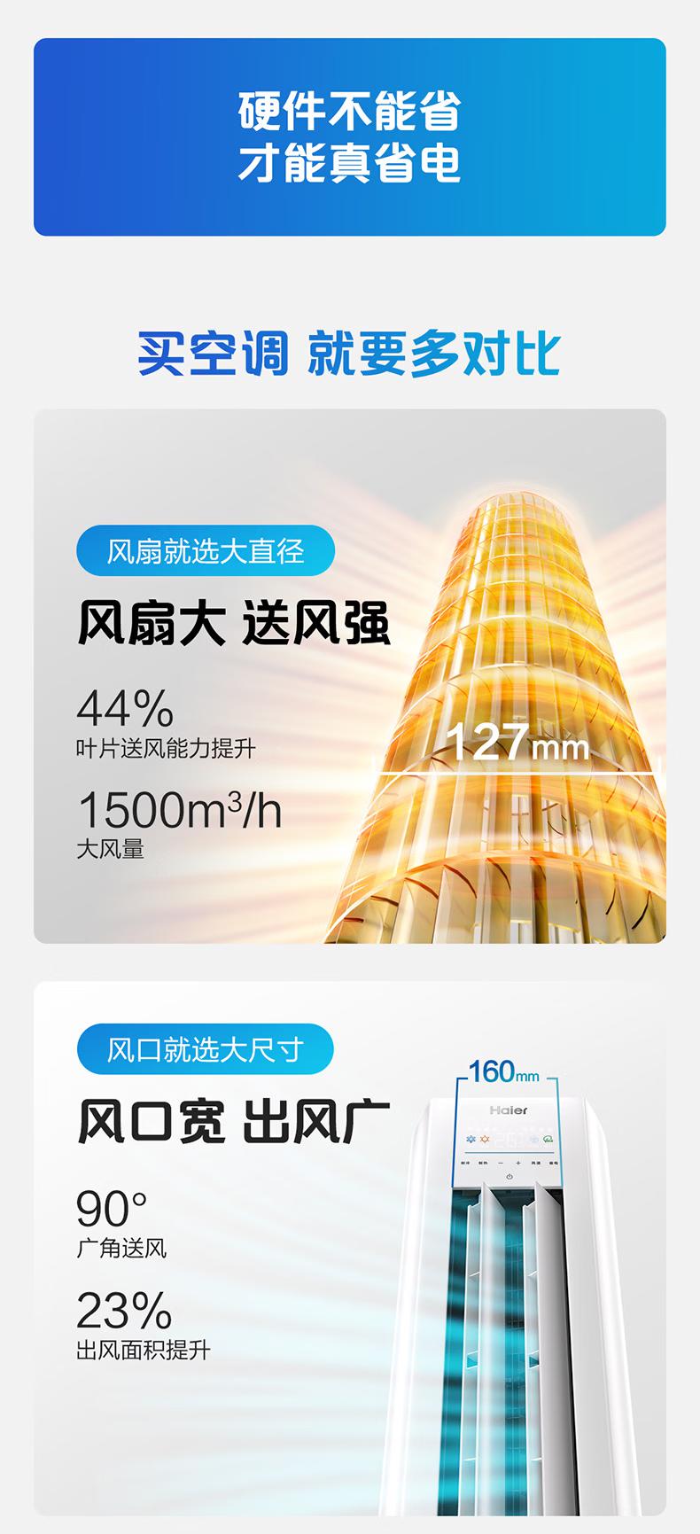 海尔空调 净省电plus2匹柜机 新一级能效变频 客厅立式双排纯铜管 国家补贴以旧换新KFR-50LW/E1-1Plus