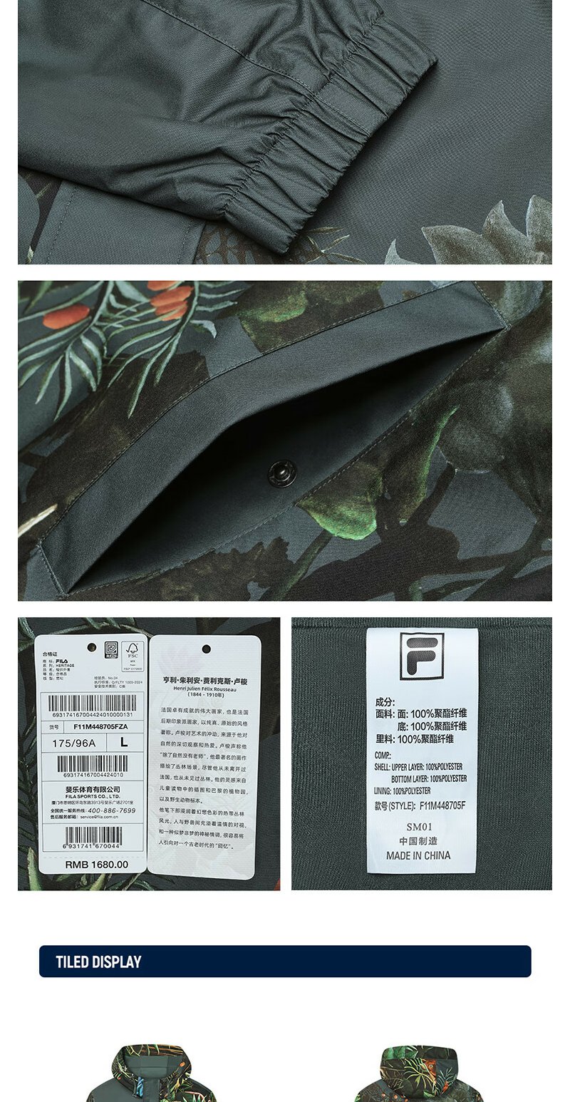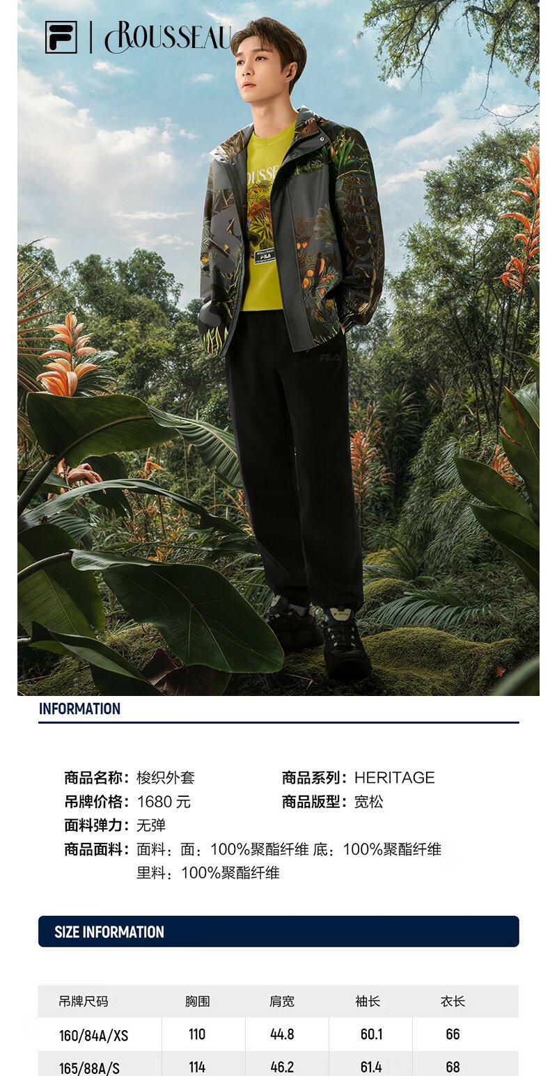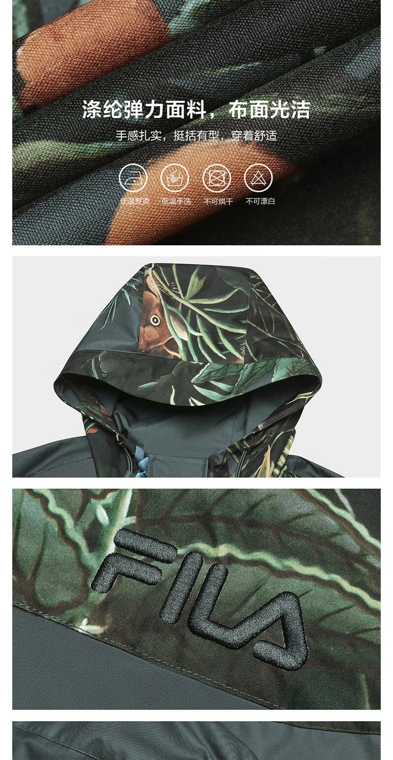 【斐乐】FILA x 卢梭 斐乐男梭织外套张艺兴同款2024冬新款休闲满印宽松连帽