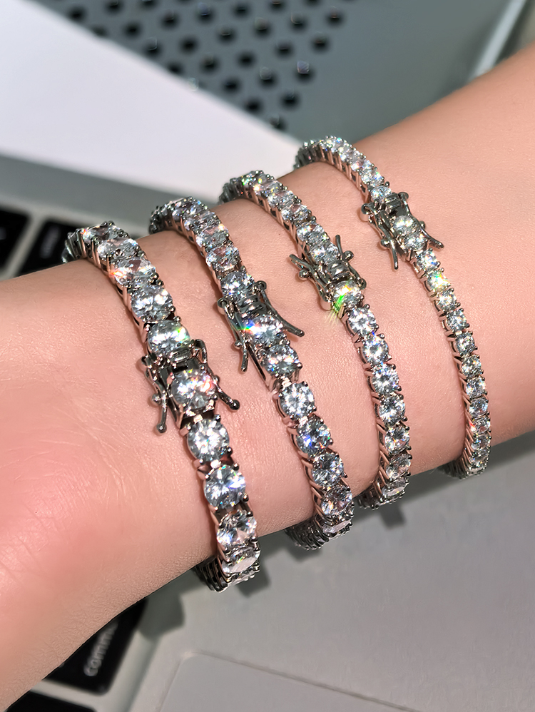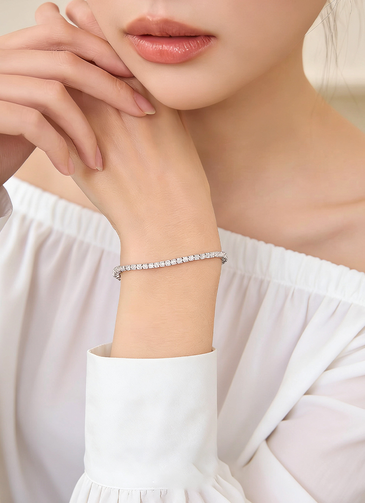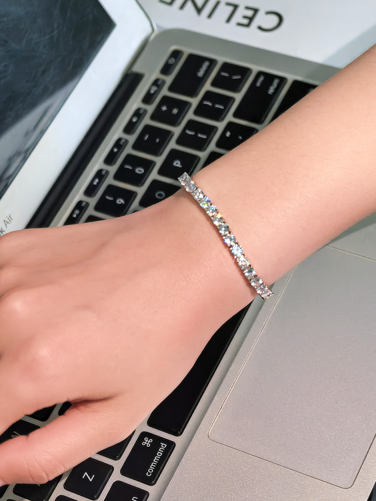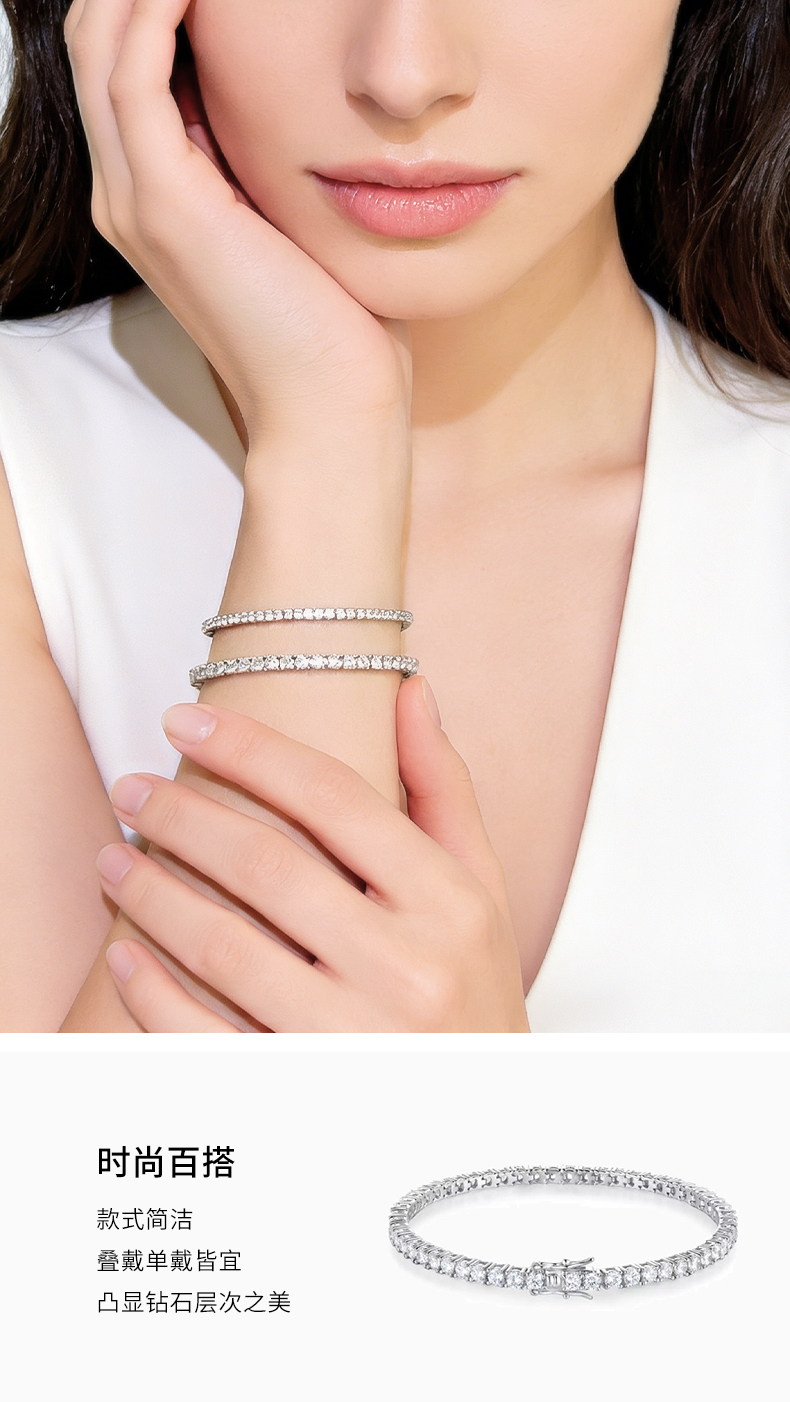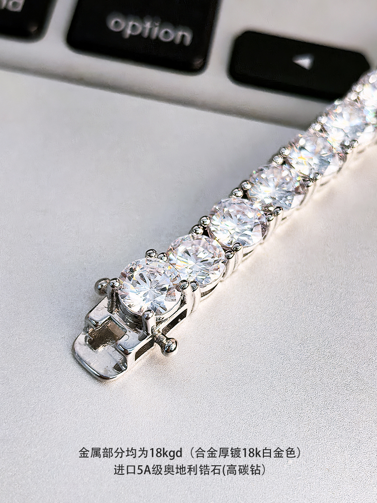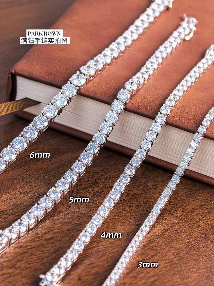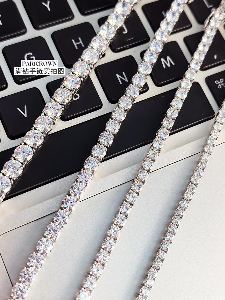 法国PARiCROWN满钻手链 微镶银白色手镯手链女气质高级网球链