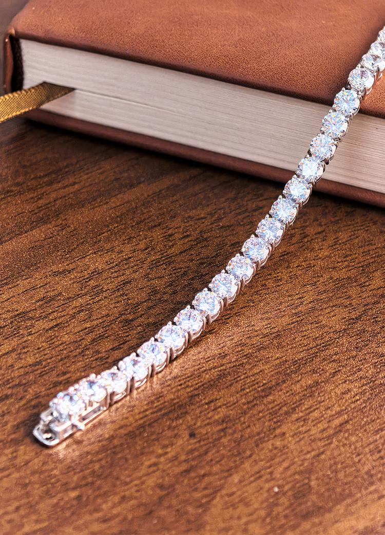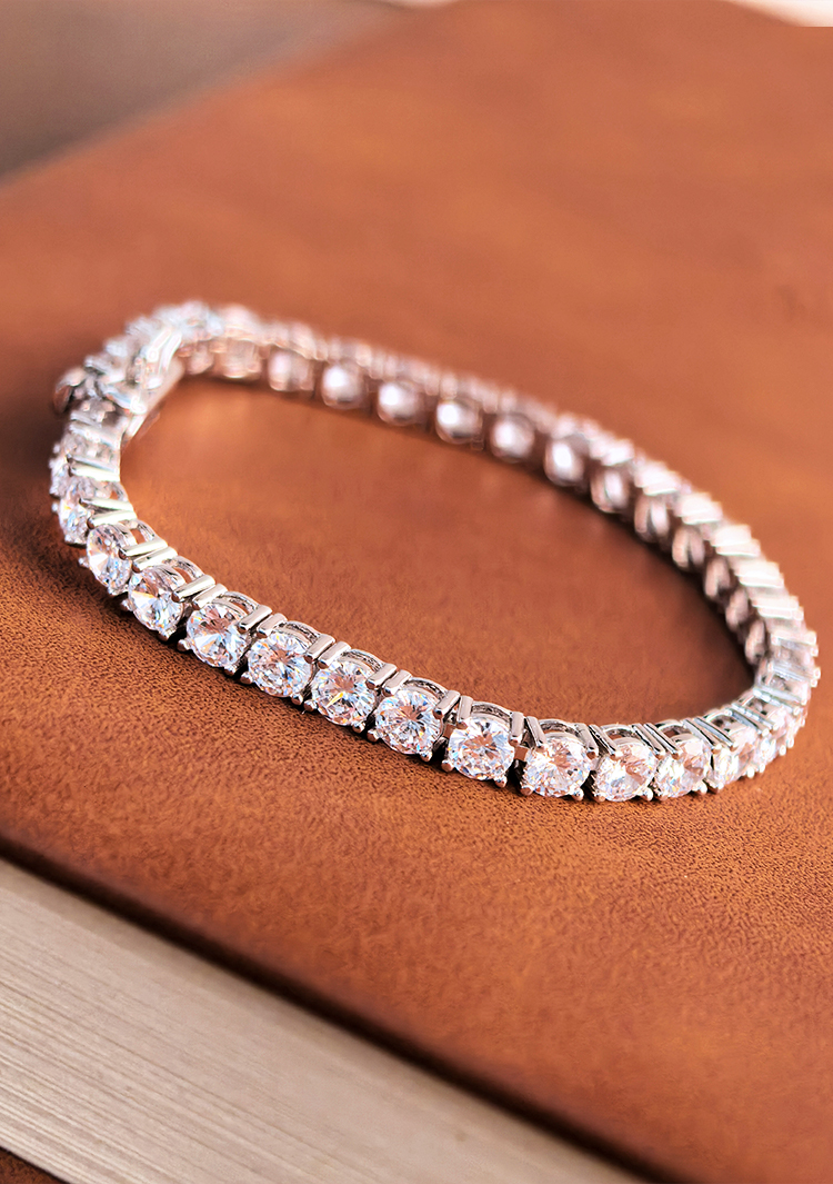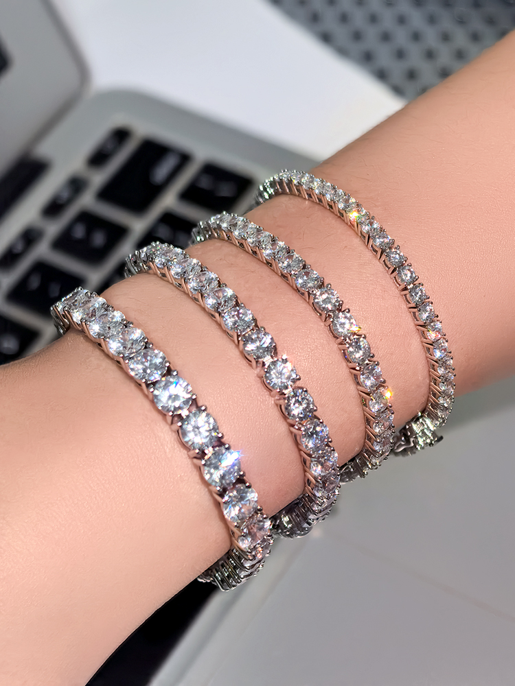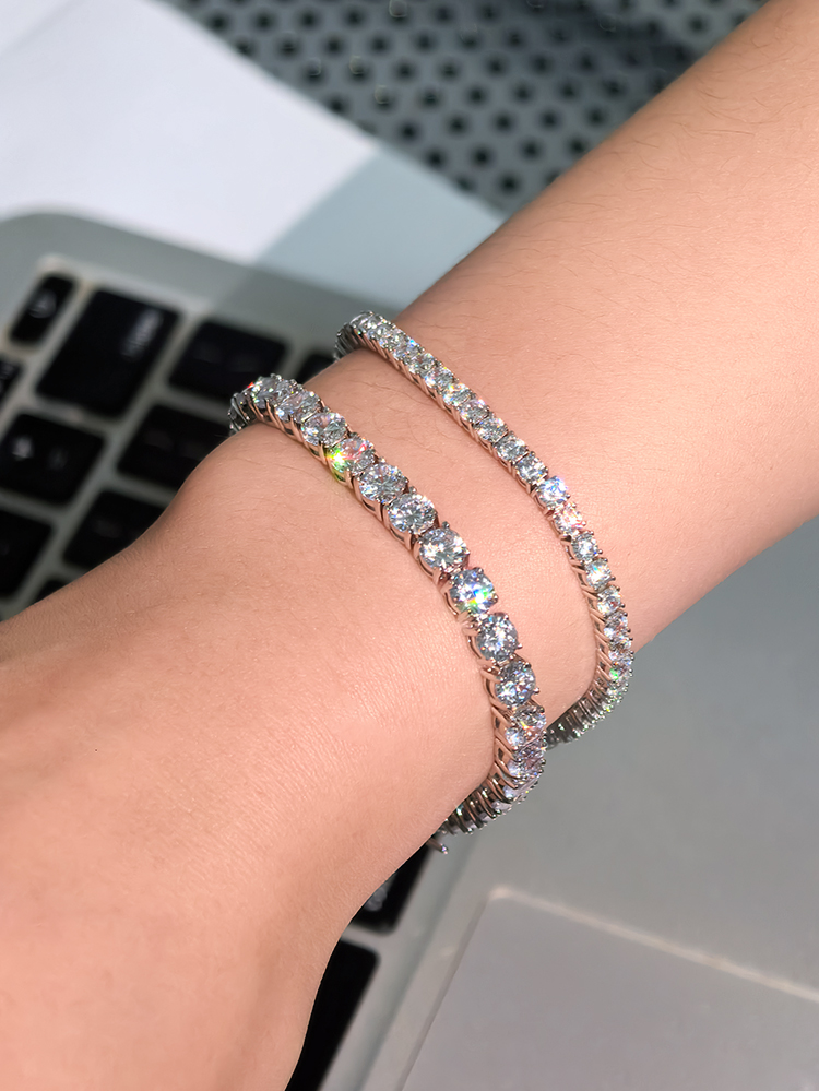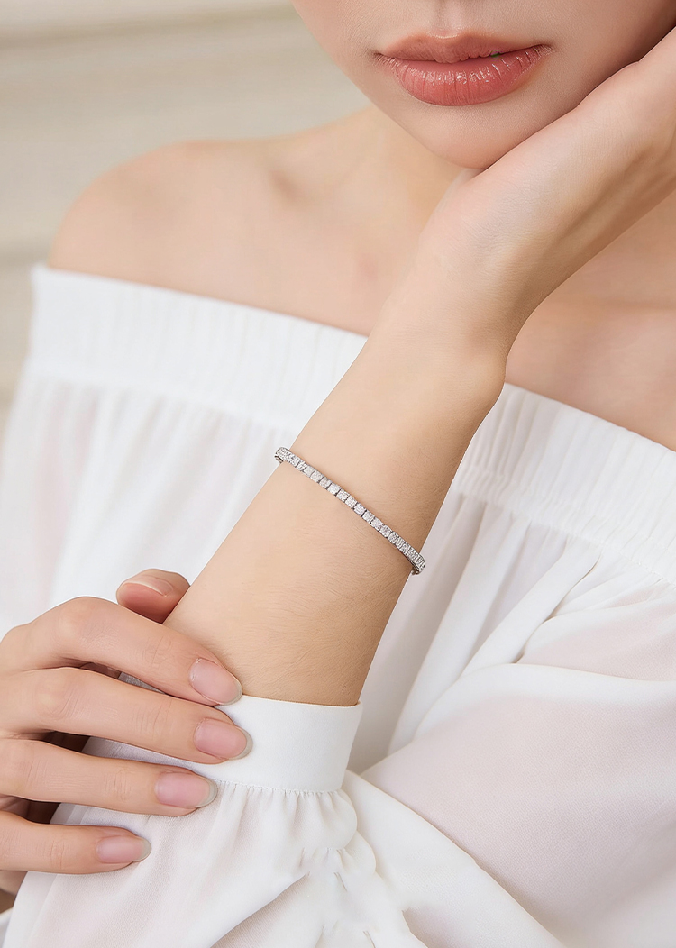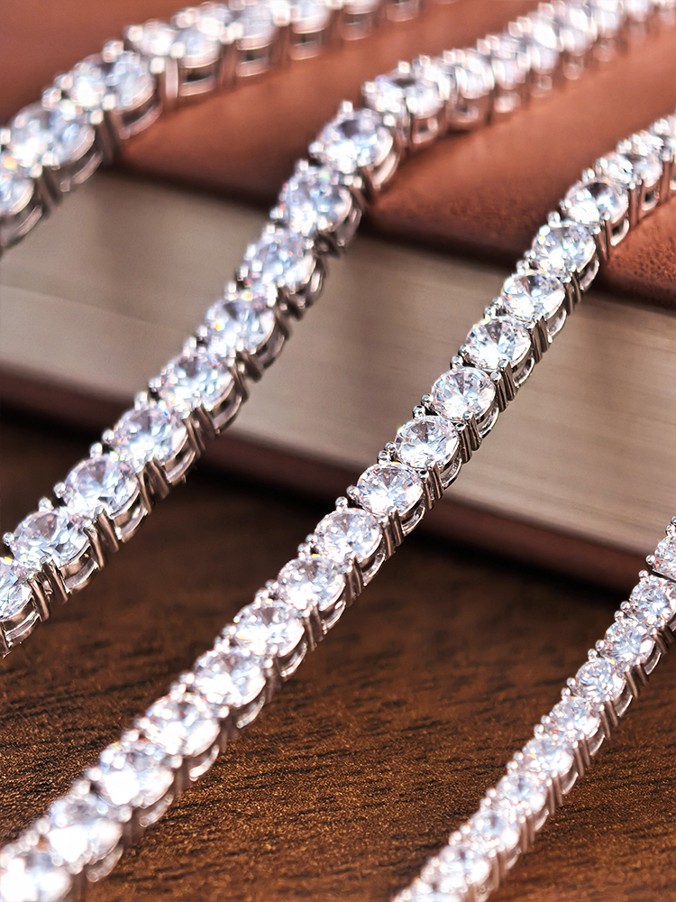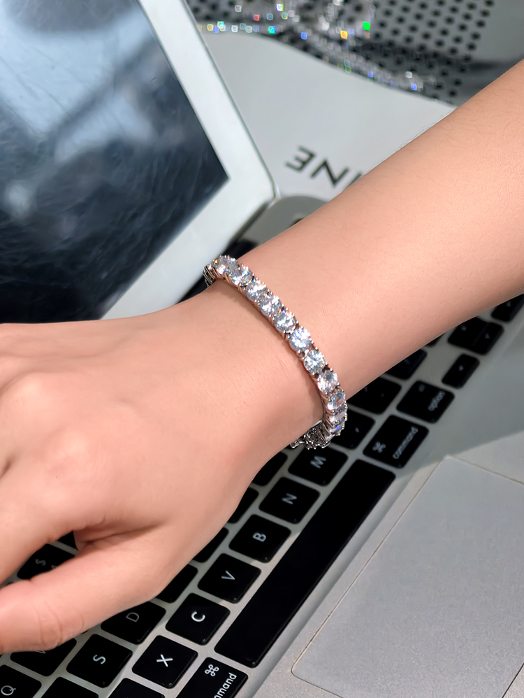 法国PARiCROWN满钻手链 微镶银白色手镯手链女气质高级网球链