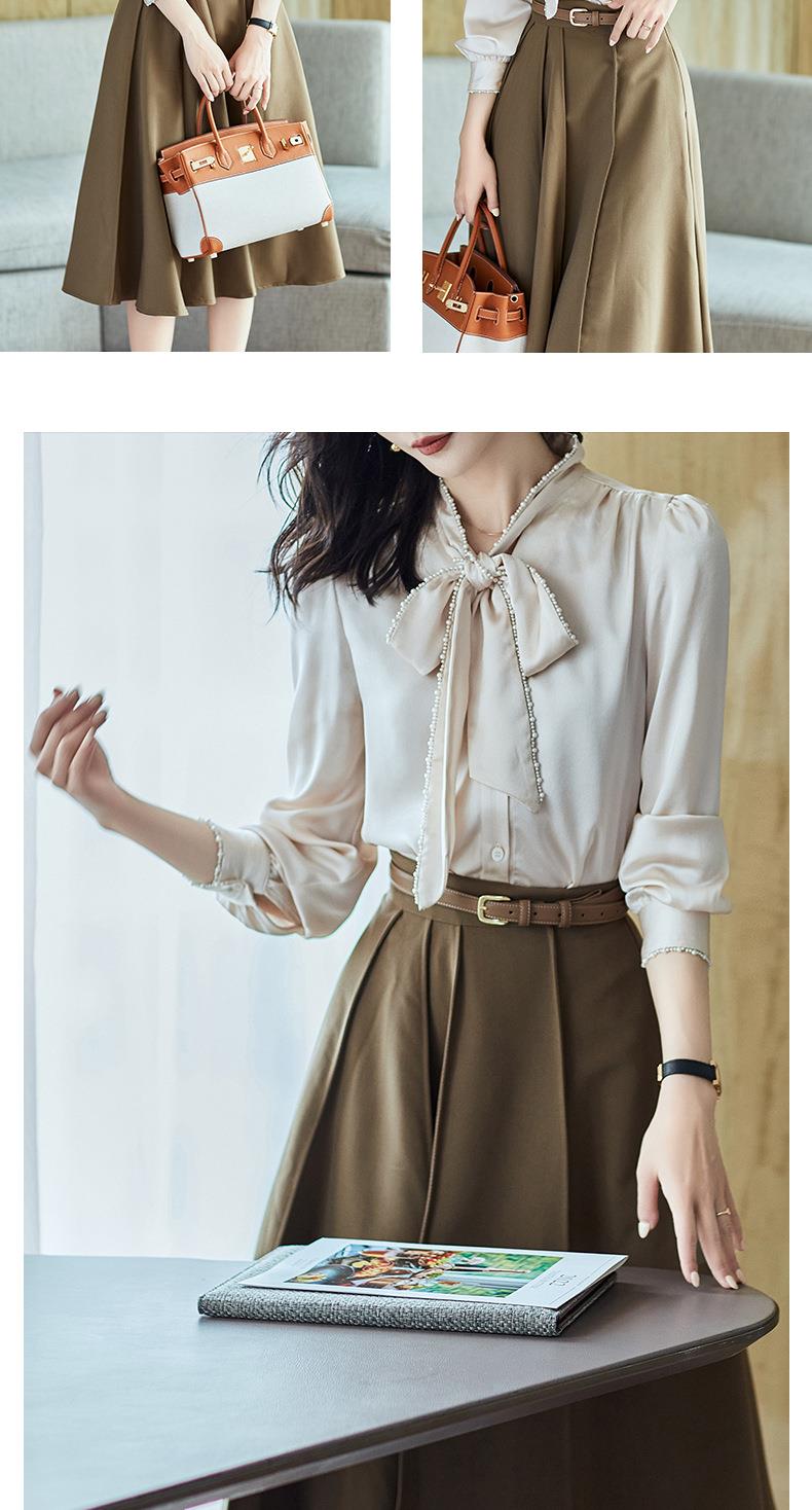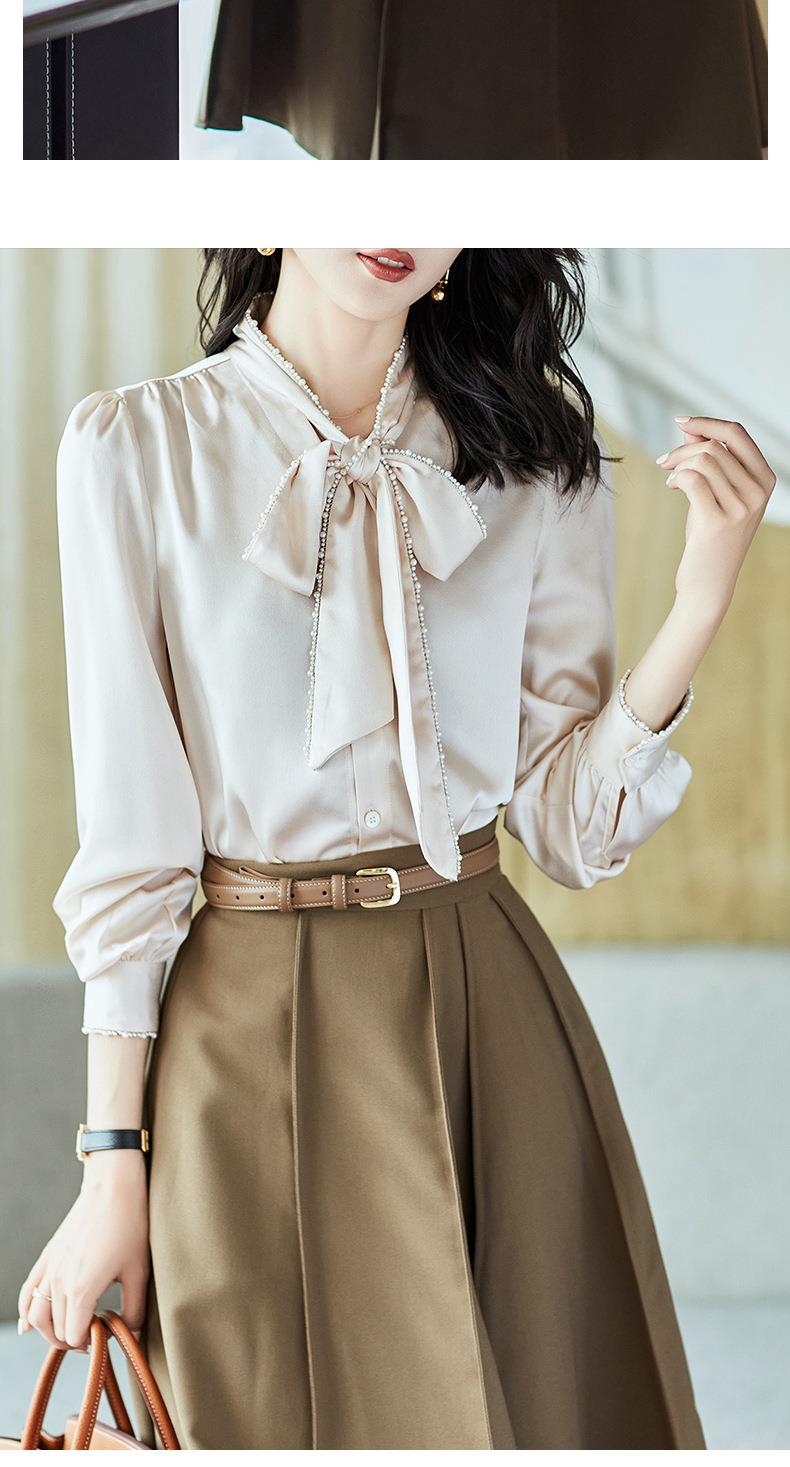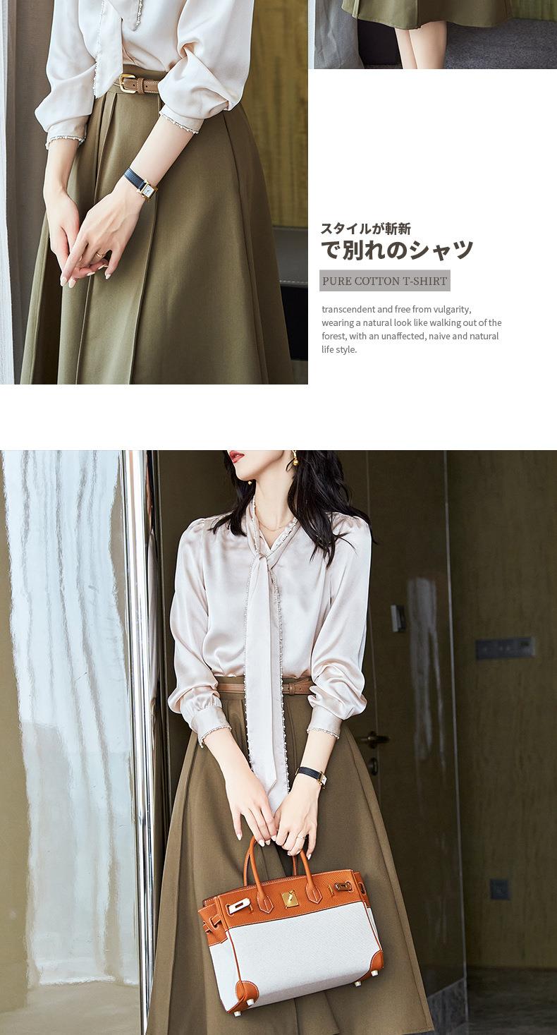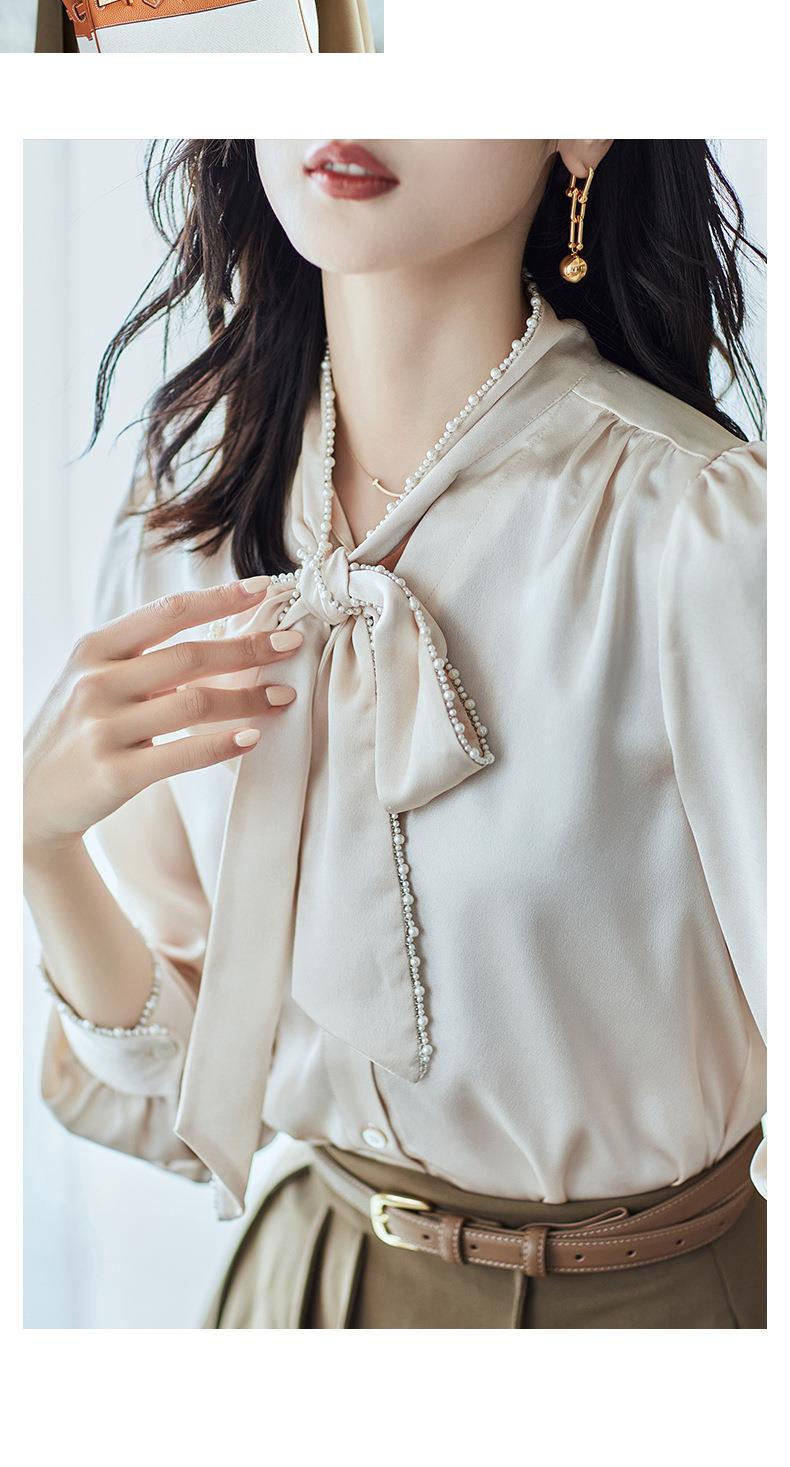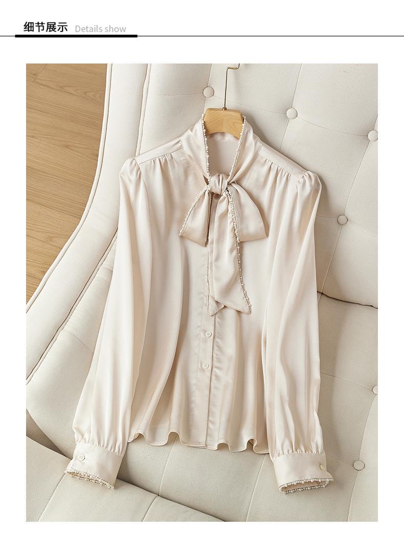 2023秋装新款衬衫女长袖宽松雪纺衫纯色女士衬衣A2362
