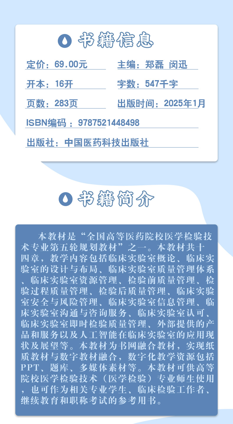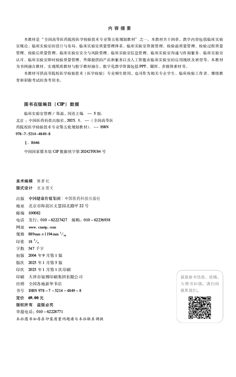 临床实验室管理 第5版 全国高等医药院校医学检验技术专业第五轮规划教材 郑磊 闵迅编 供医学检验技术专业用 中国医药科技出版社