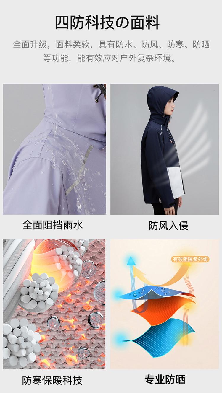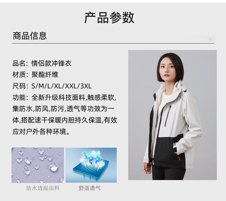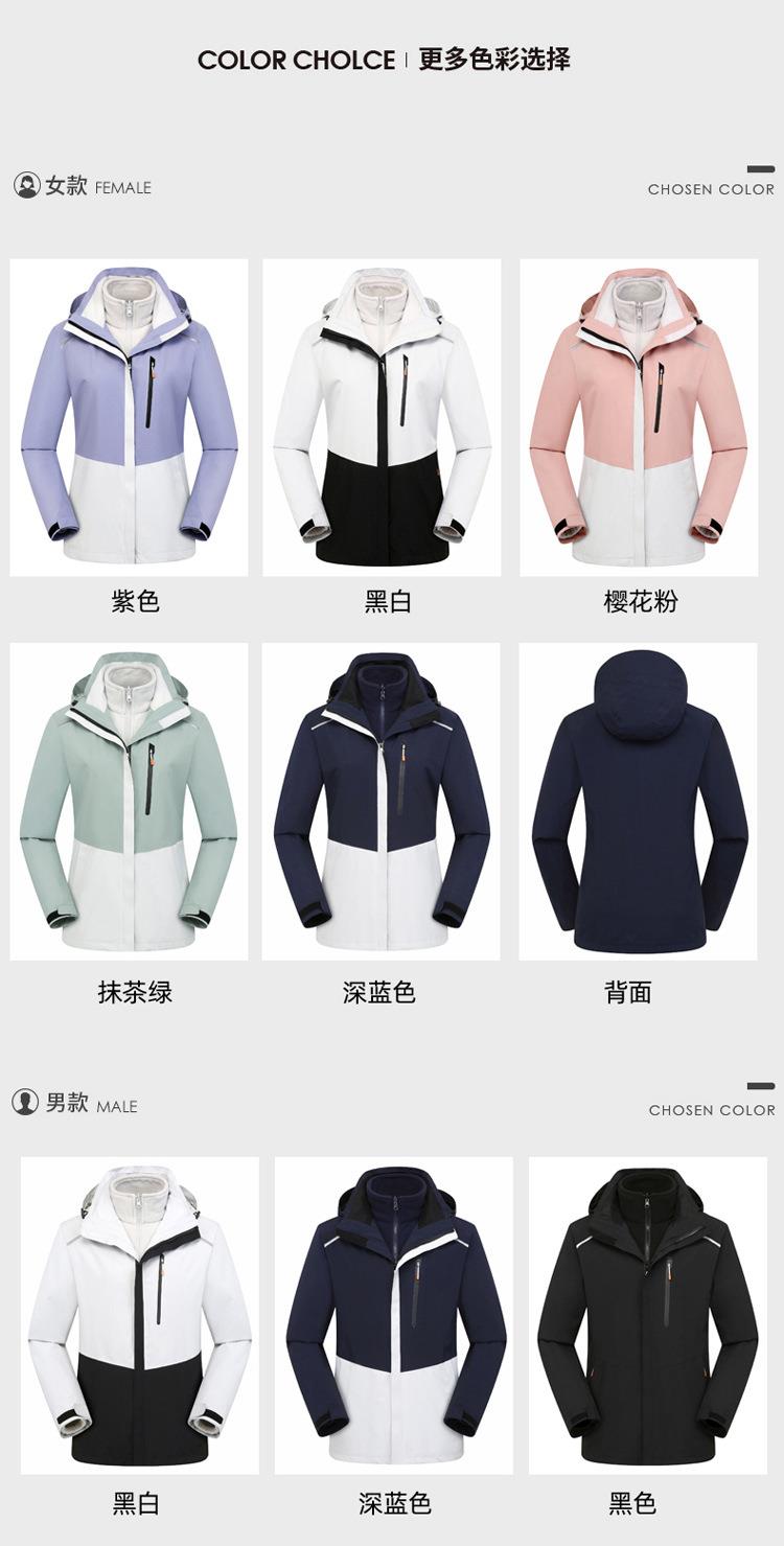 新款户外冲锋衣男女款两件套三合一防风防水登山服抓绒衣外套