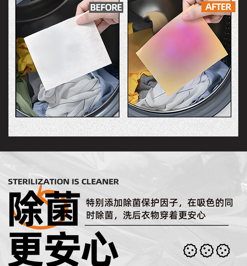 【拒绝染色串色】防串色吸色片衣物衣服混洗防串色染色洗衣纸色母片洗衣机固色护色,衣物再也不用费心分开洗。ry