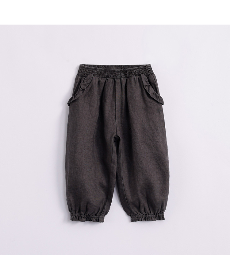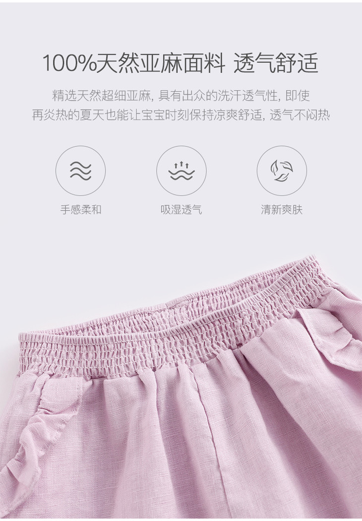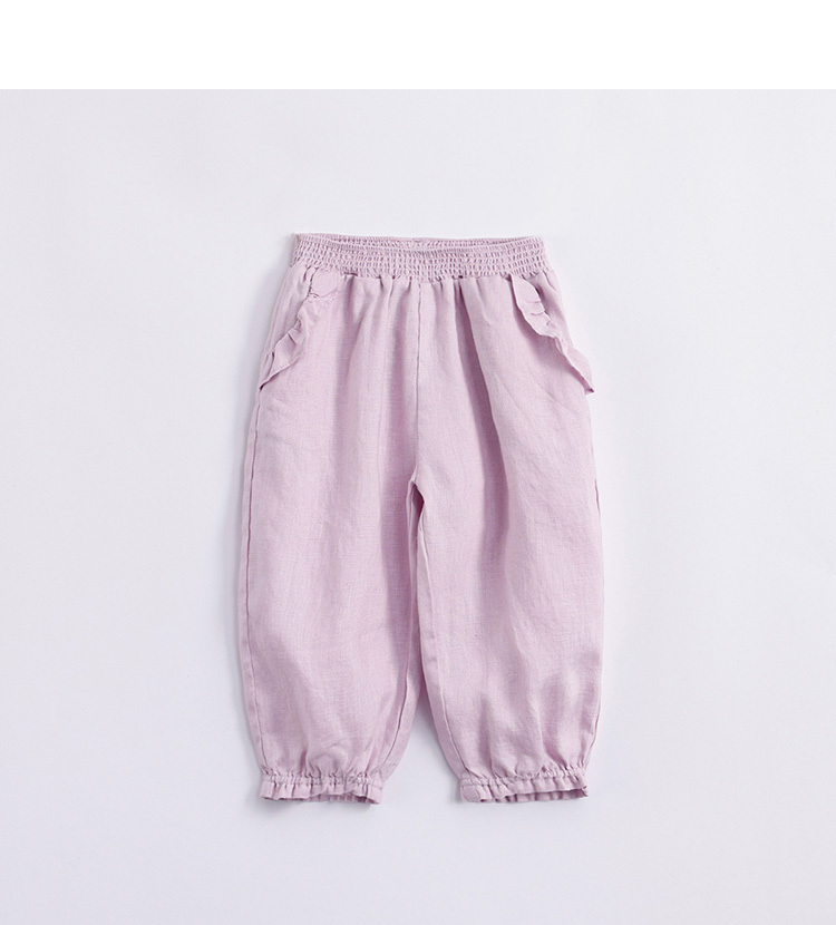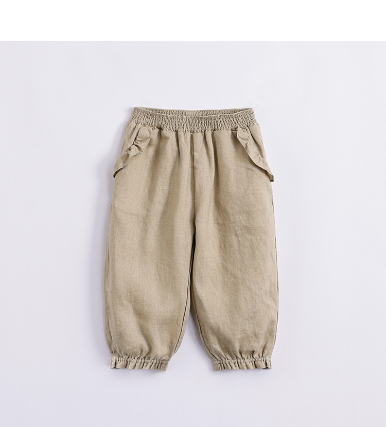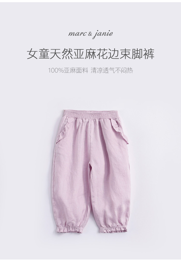 马克珍妮夏装新款 女童花边束脚亚麻休闲裤 女童裤子230991