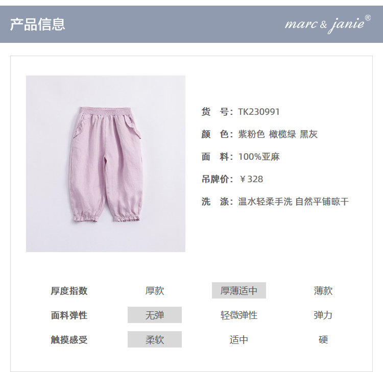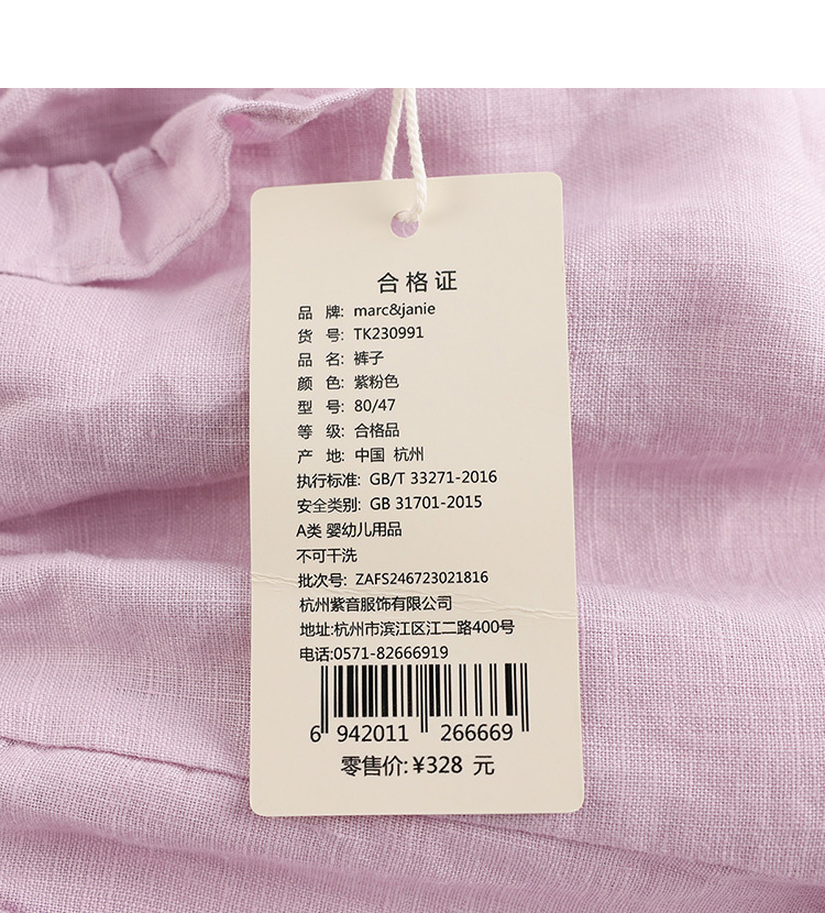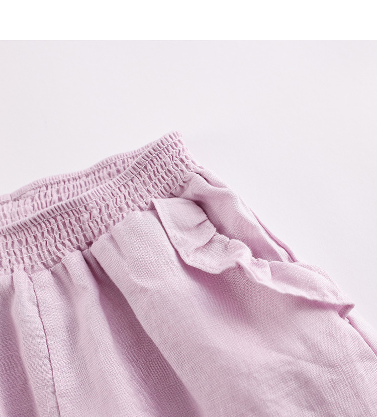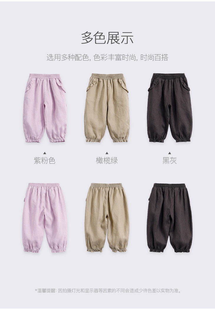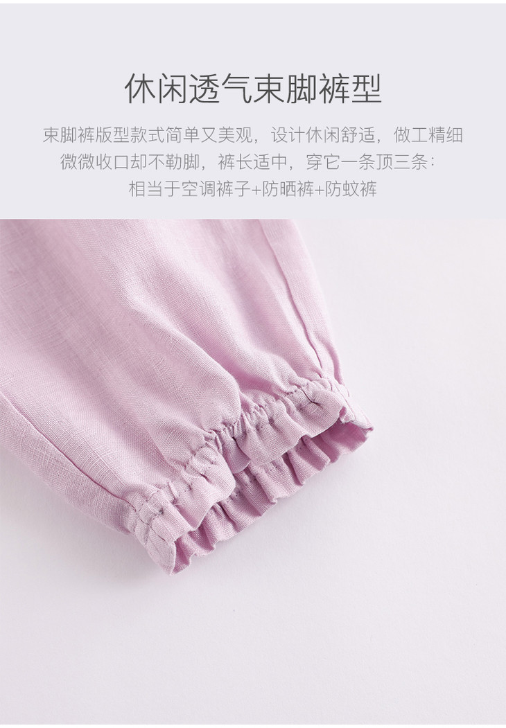 马克珍妮夏装新款 女童花边束脚亚麻休闲裤 女童裤子230991