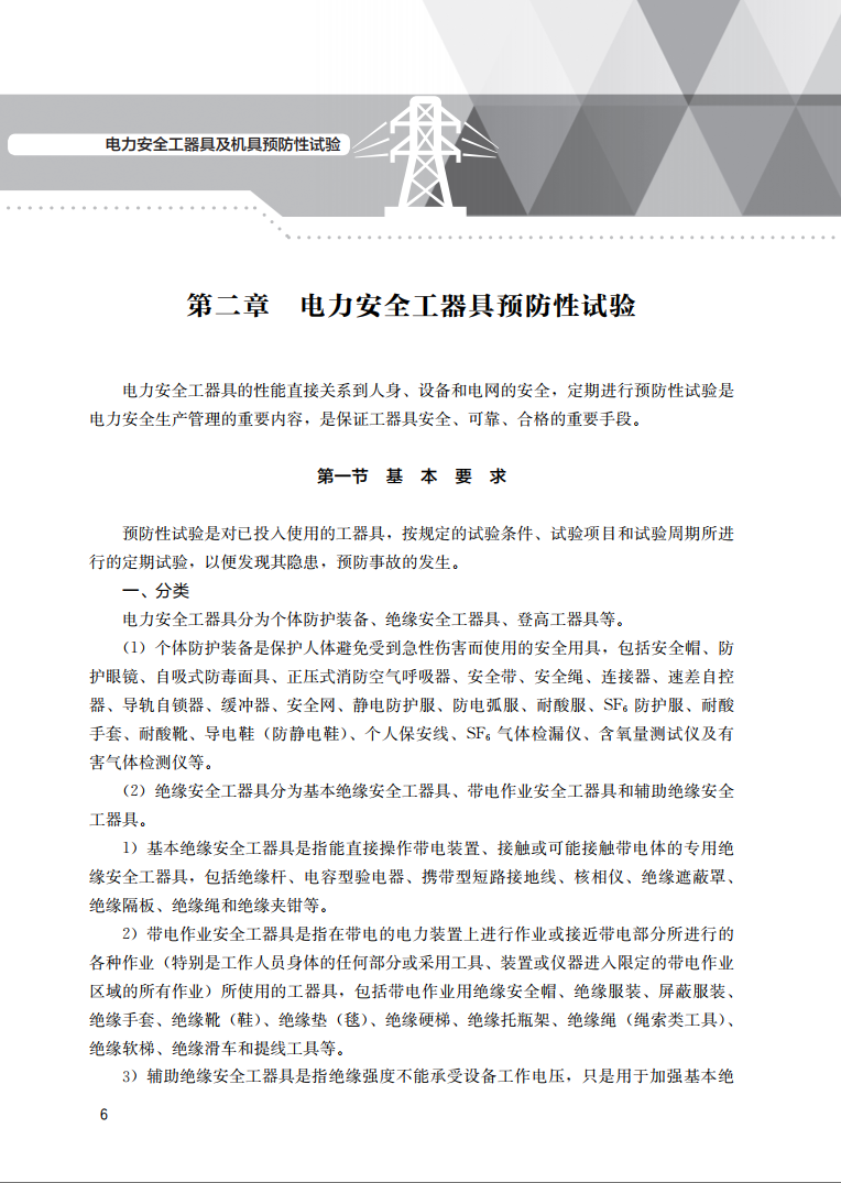 各类安全工器具及施工机具预防性试验及管理是当前电力行业的一个热点,也是电力安全生产管理的一个重要组成部分。提供科学的试验方法和完善的管理要求,可确保各类安全工器具及小型施工机具的安全,对于保障电力作业人员的人身安全、防范电网和设备事故,具有十分重要的作用。
