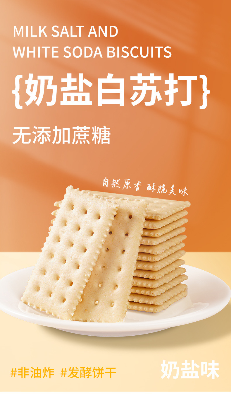 【轻薄酥脆!代餐奶盐苏打饼干】不单独添加蔗糖小零食代早餐品传统糕点心,奶盐白苏打饼干薄脆咸味零食代餐早餐零食礼包一整箱