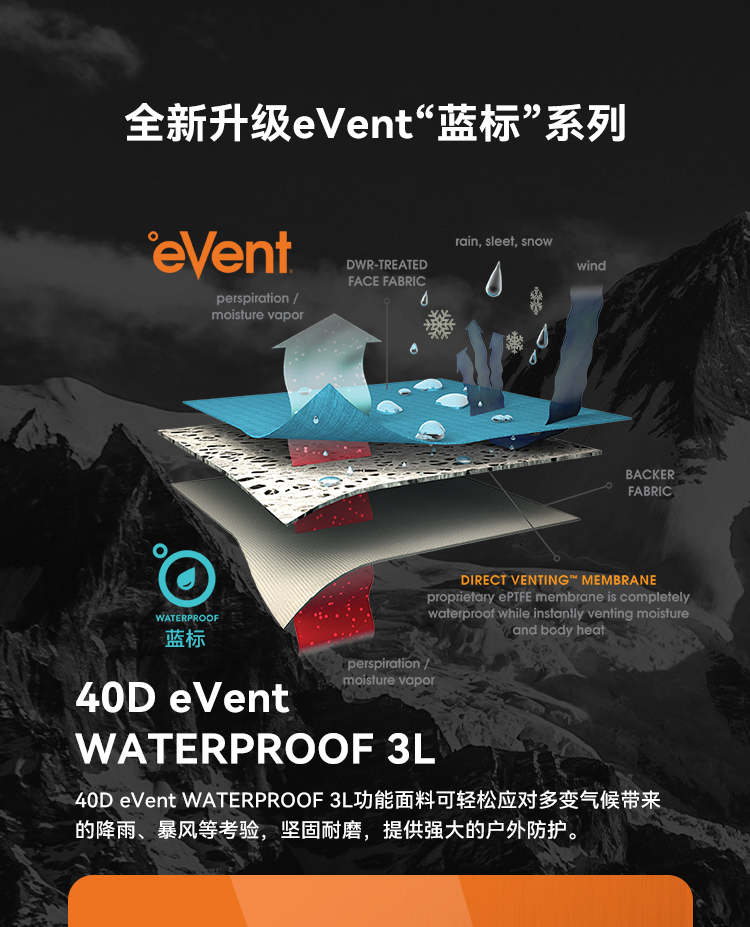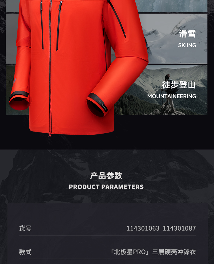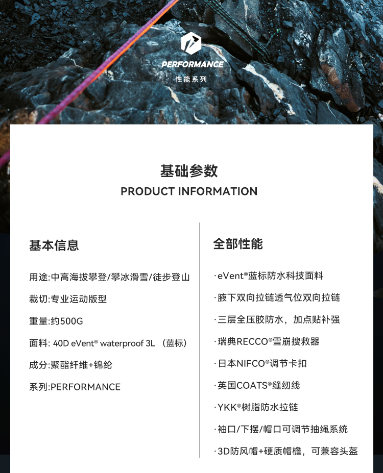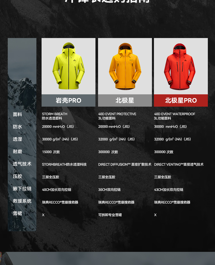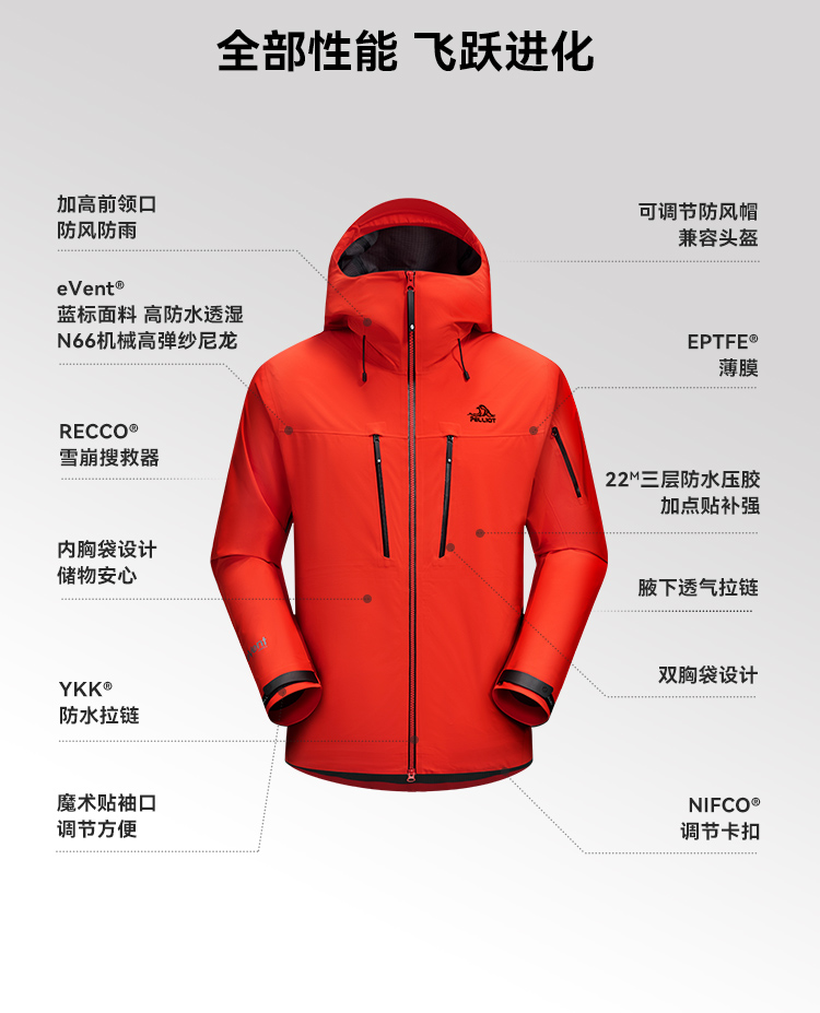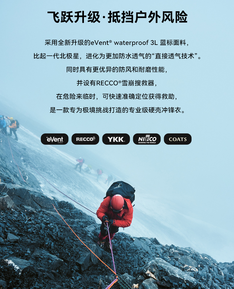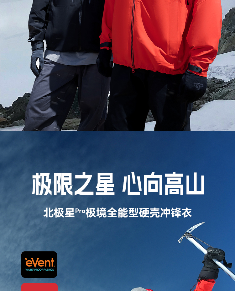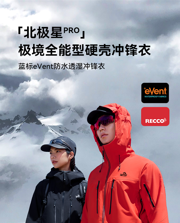 【北极星PRO】伯希和极境硬壳冲锋衣eVent暴雨防水专业户外登山服男女114301087