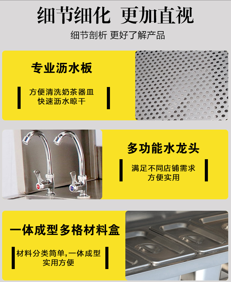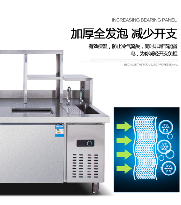 不锈钢水吧台商用全套设备工作台奶茶店吧台桌冷藏保鲜冰箱冰冻柜