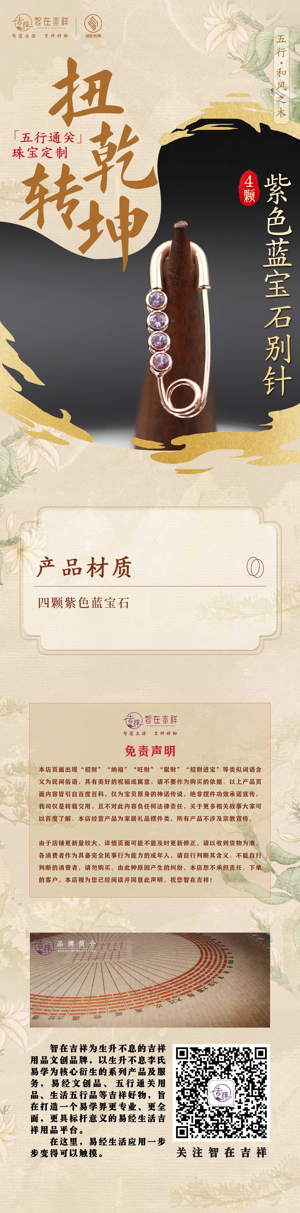 【和风之木】4颗紫色蓝宝石别针 胸针