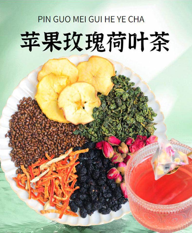 【超好喝!苹果玫瑰荷叶茶】植物草本,甄选决明子、橘皮、桑葚、荷叶、重瓣红玫瑰、苹果!抖音爆款花草果茶泡茶茶袋泡茶养生玫瑰茶