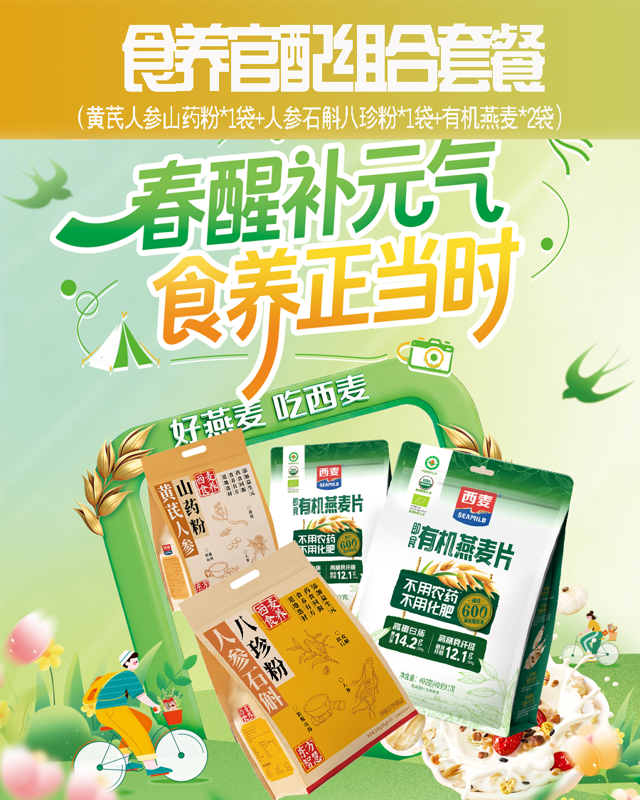【官配食养早餐组合装】西麦人参石斛山药粉+黄芪人参八珍粉搭配西麦有机燕麦片