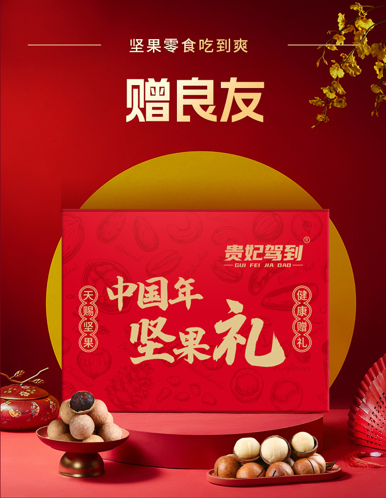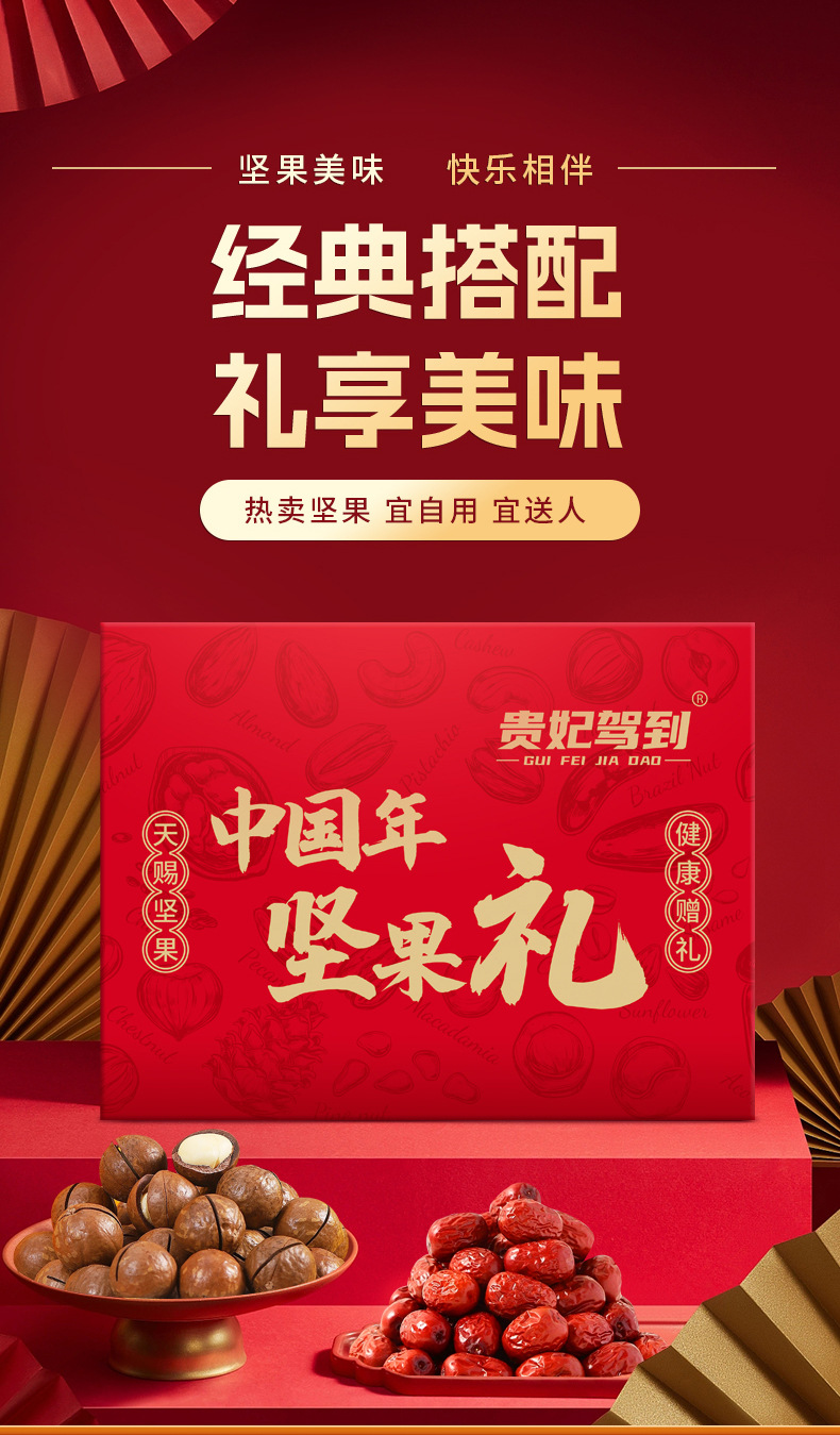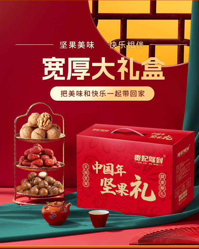 【坚果美味快乐相伴!宽厚大礼盒】整箱10袋 坚果礼盒混合坚果零食礼品送长辈干果果干红色喜庆节日炒货整箱新伴手礼