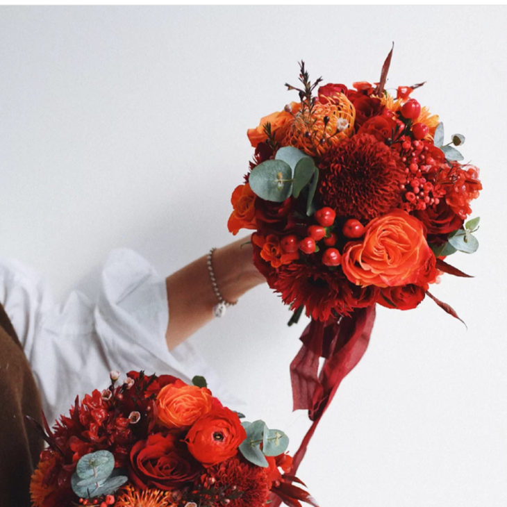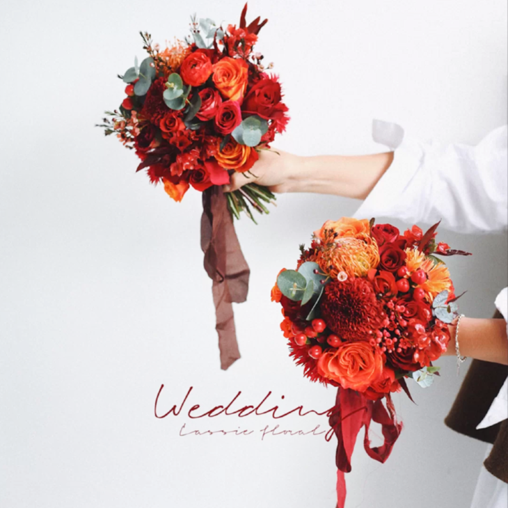 《幸福里》-红橙色系新娘手捧花