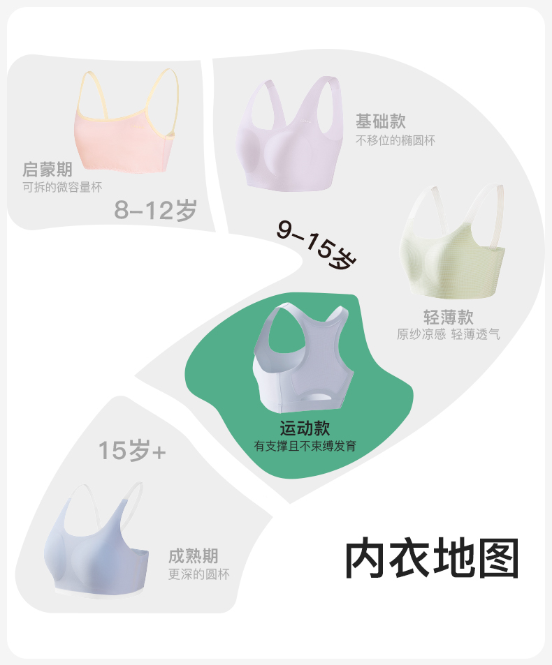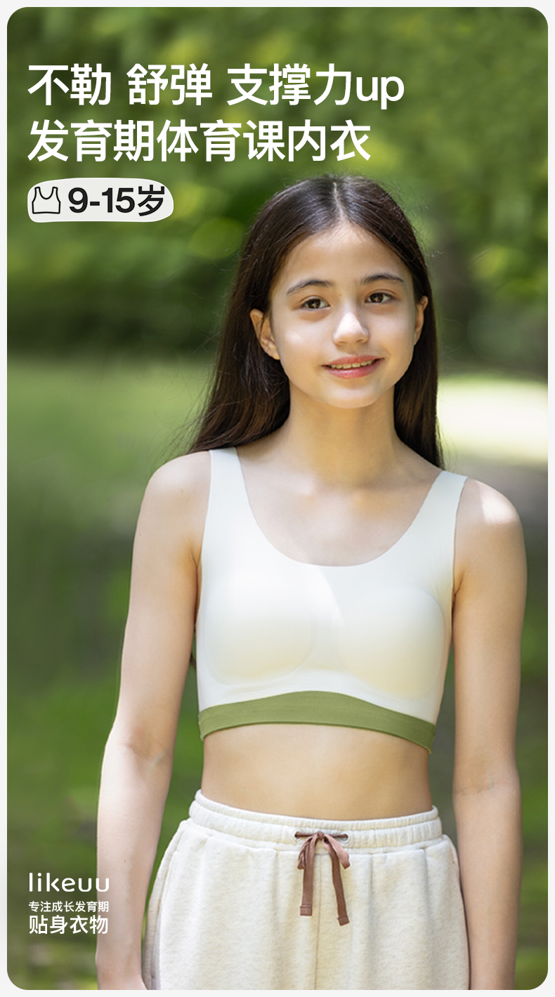 ubras旗下likeuu少女运动内衣透气女童学生撞色抹胸背心发育期A(日常I)