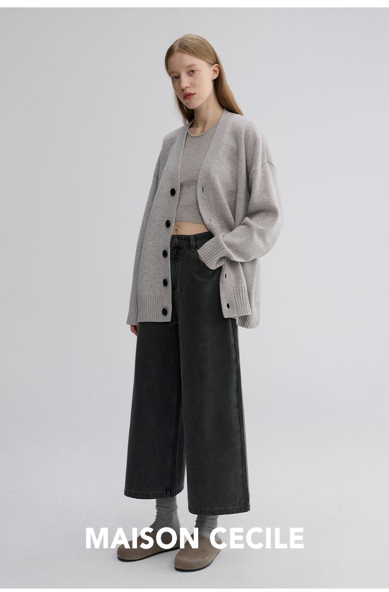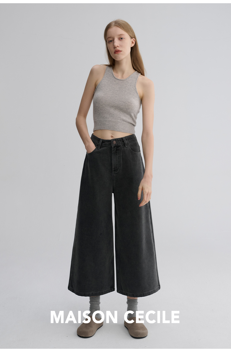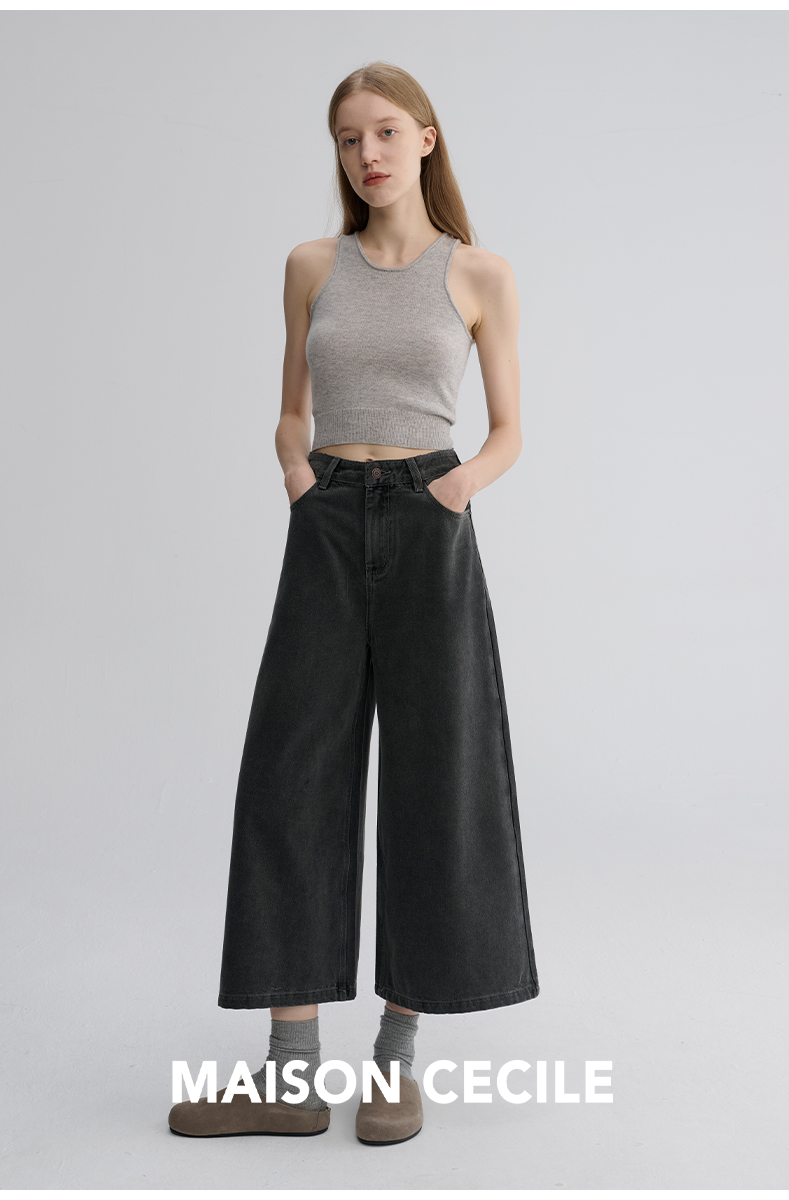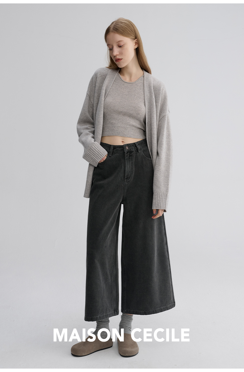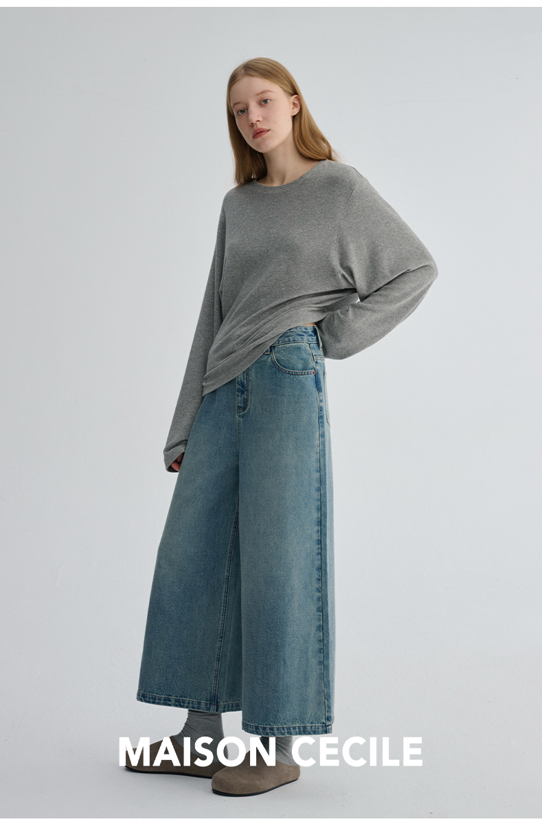MAISON CECILE 宽松量感大裤腿休闲复古松弛感做旧牛仔八分裤