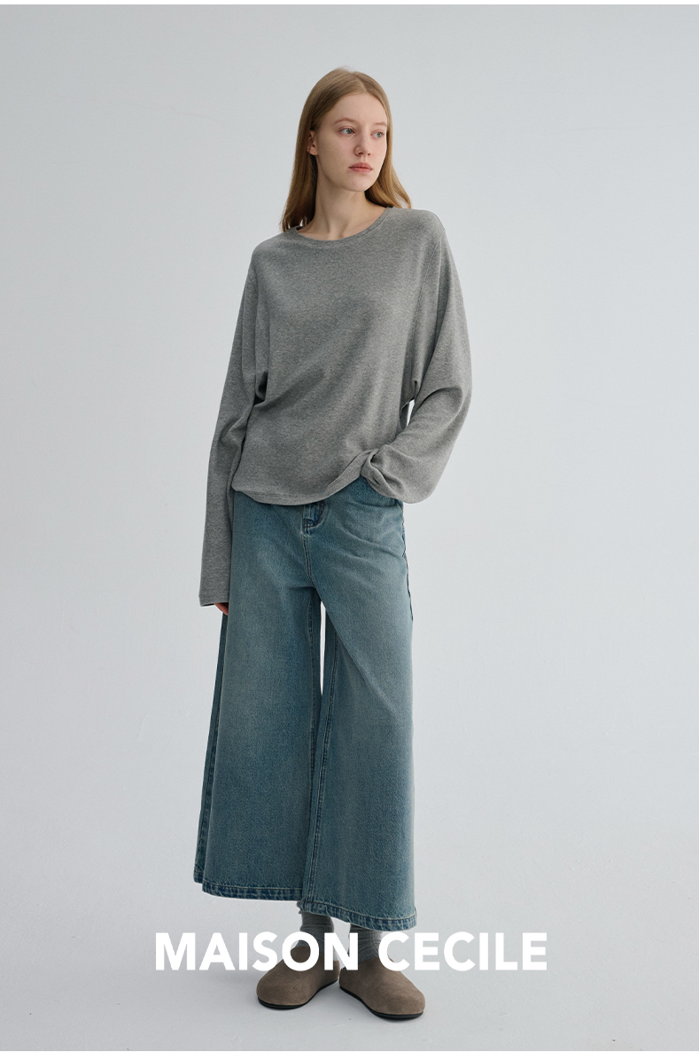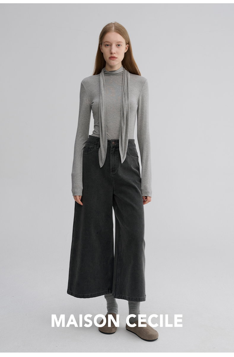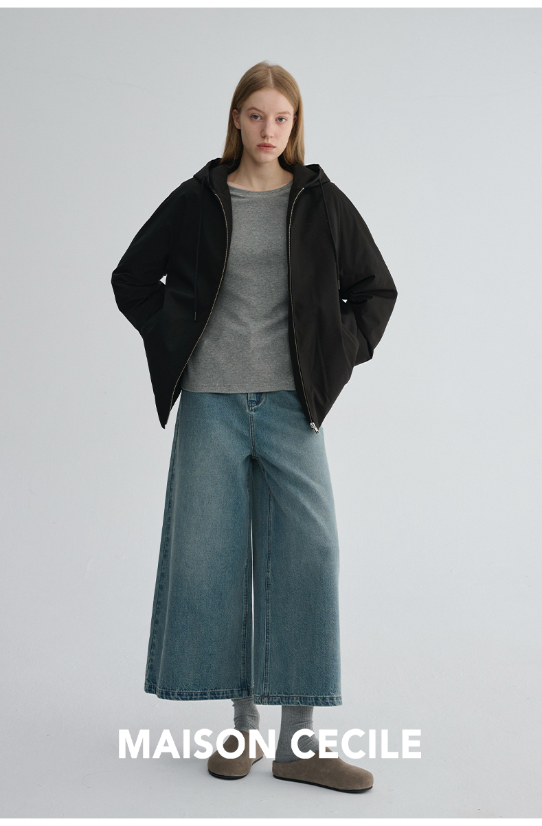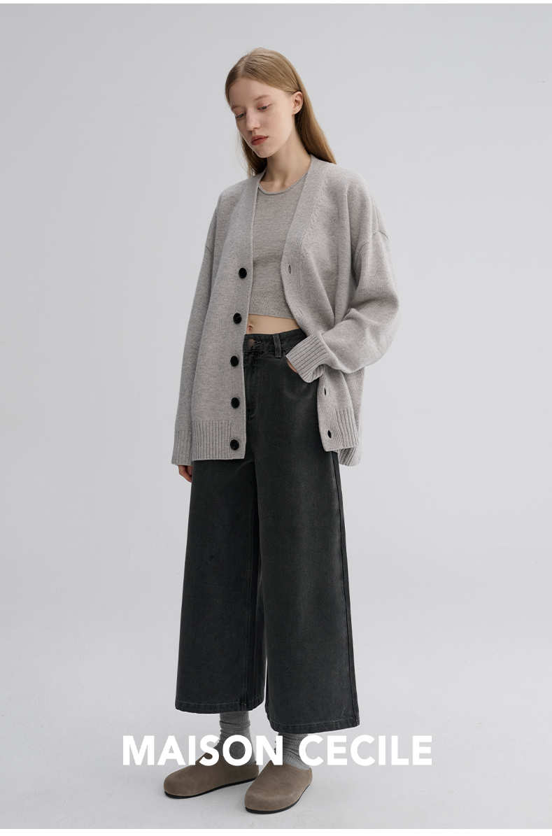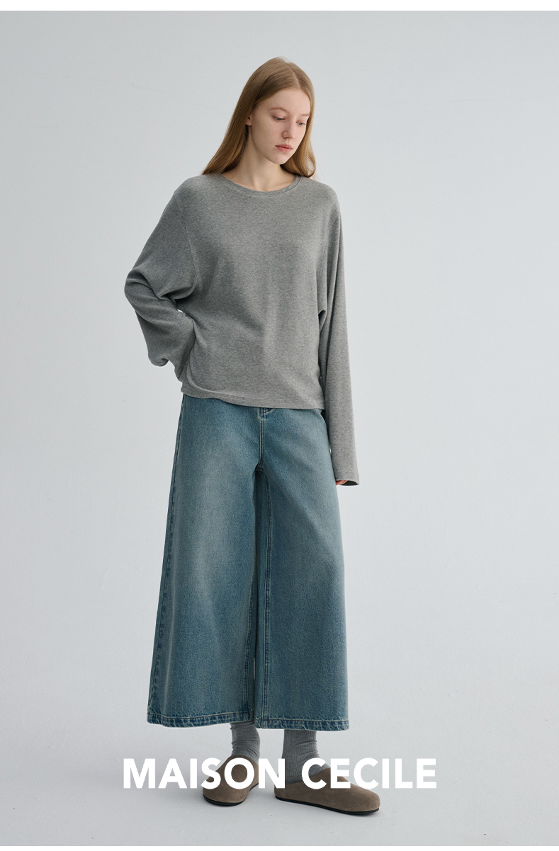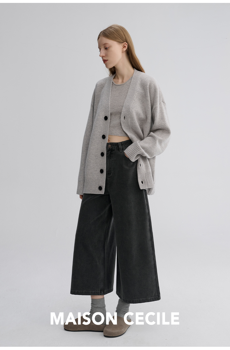 MAISON CECILE 宽松量感大裤腿休闲复古松弛感做旧牛仔八分裤