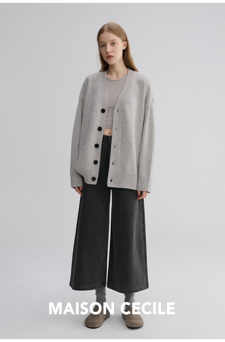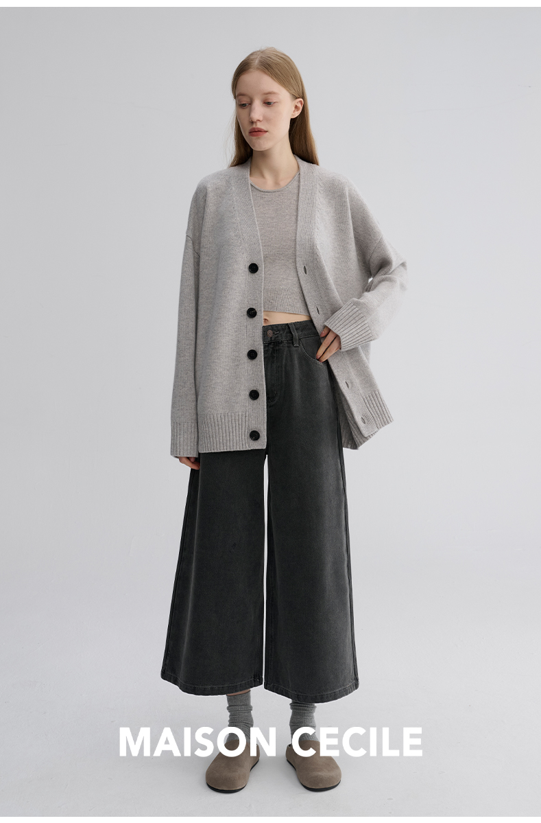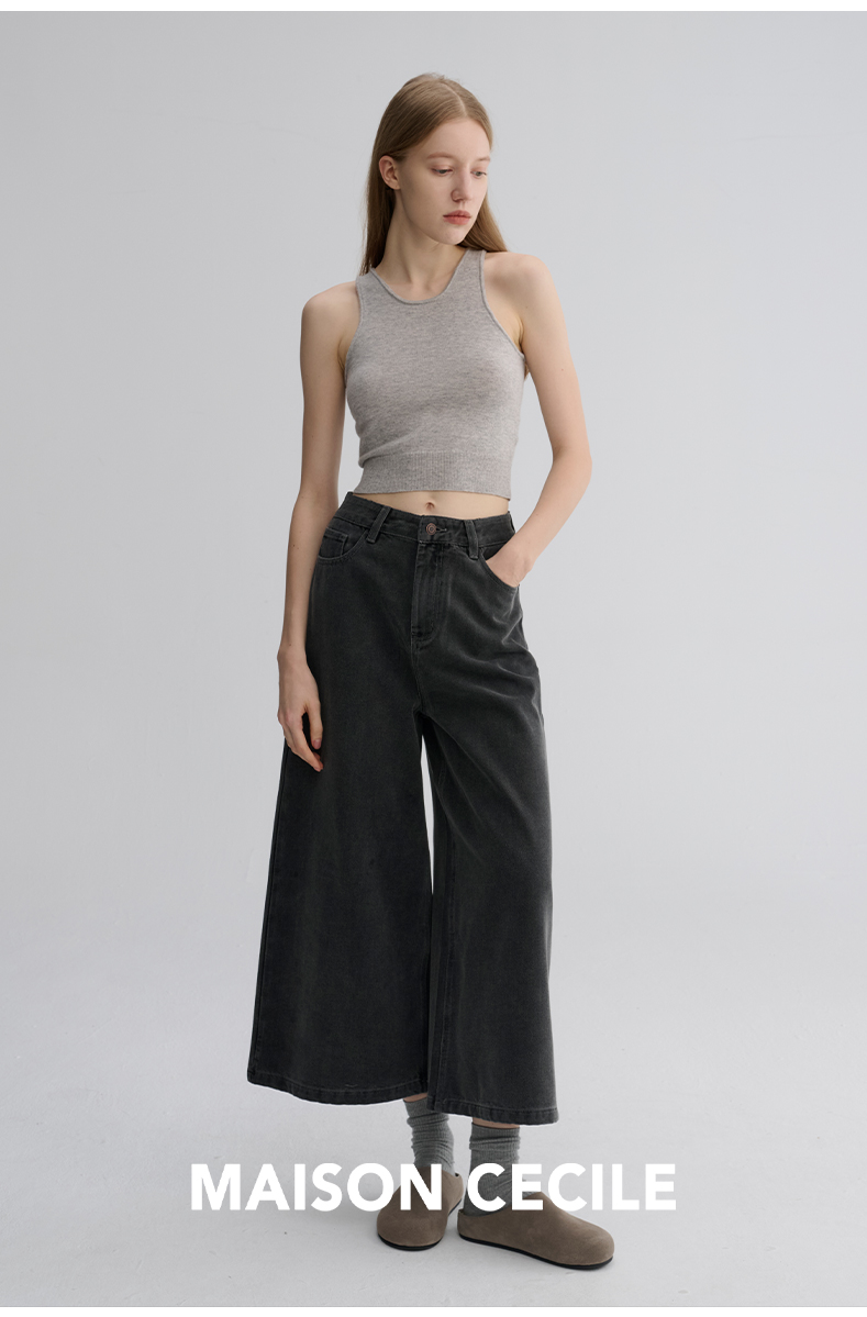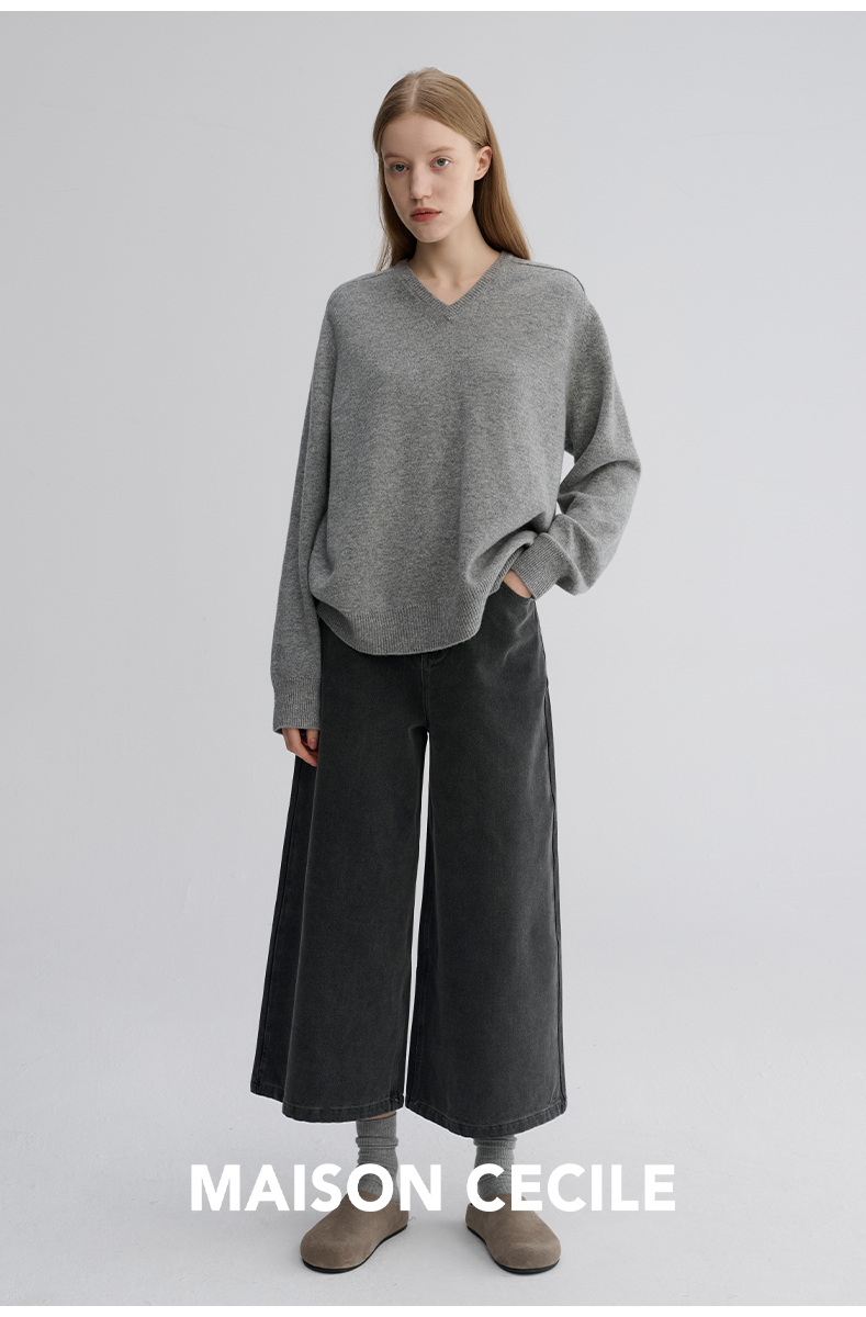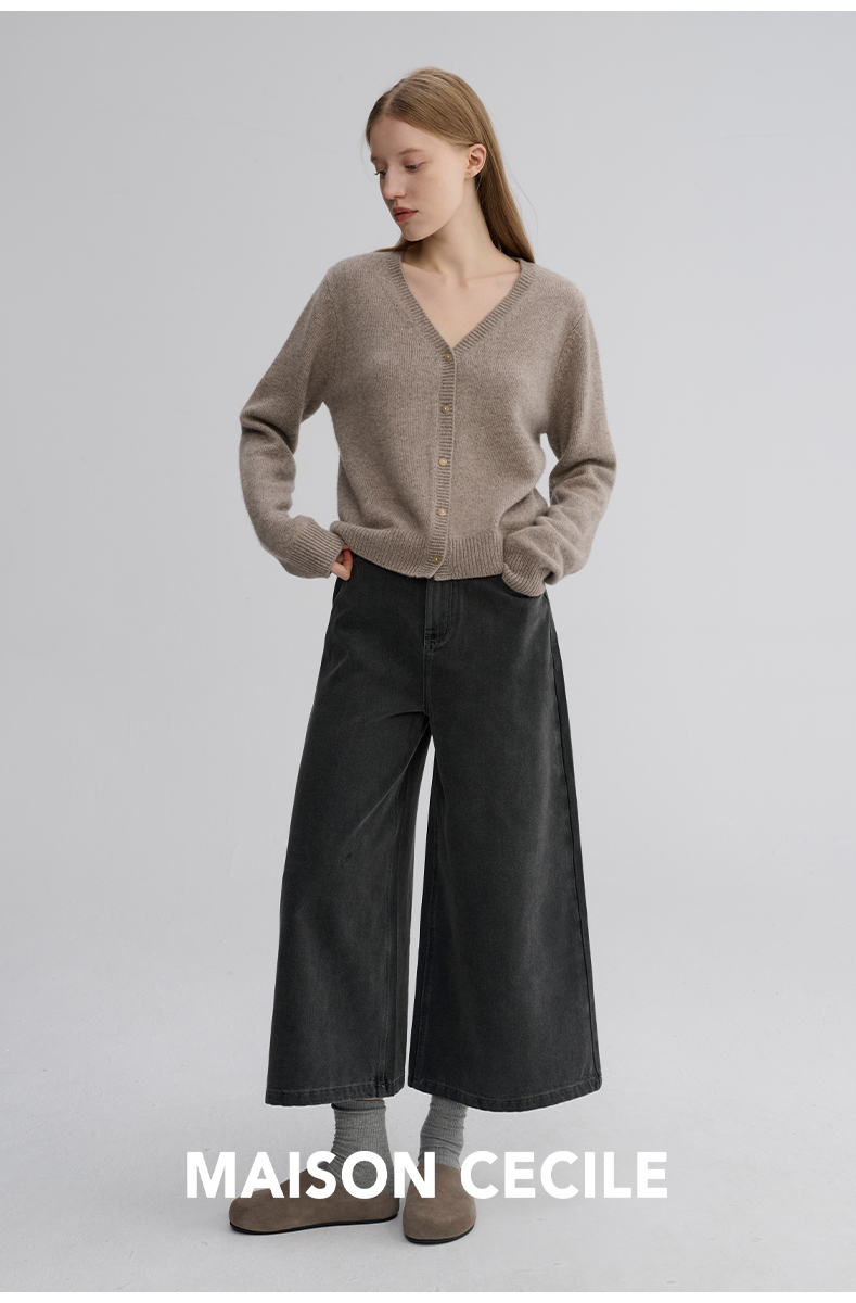 MAISON CECILE 宽松量感大裤腿休闲复古松弛感做旧牛仔八分裤