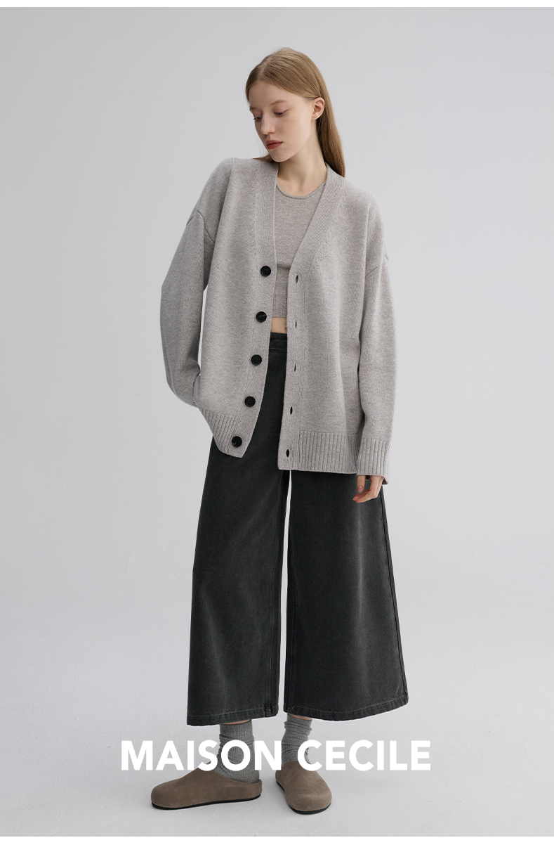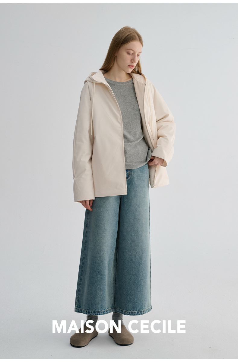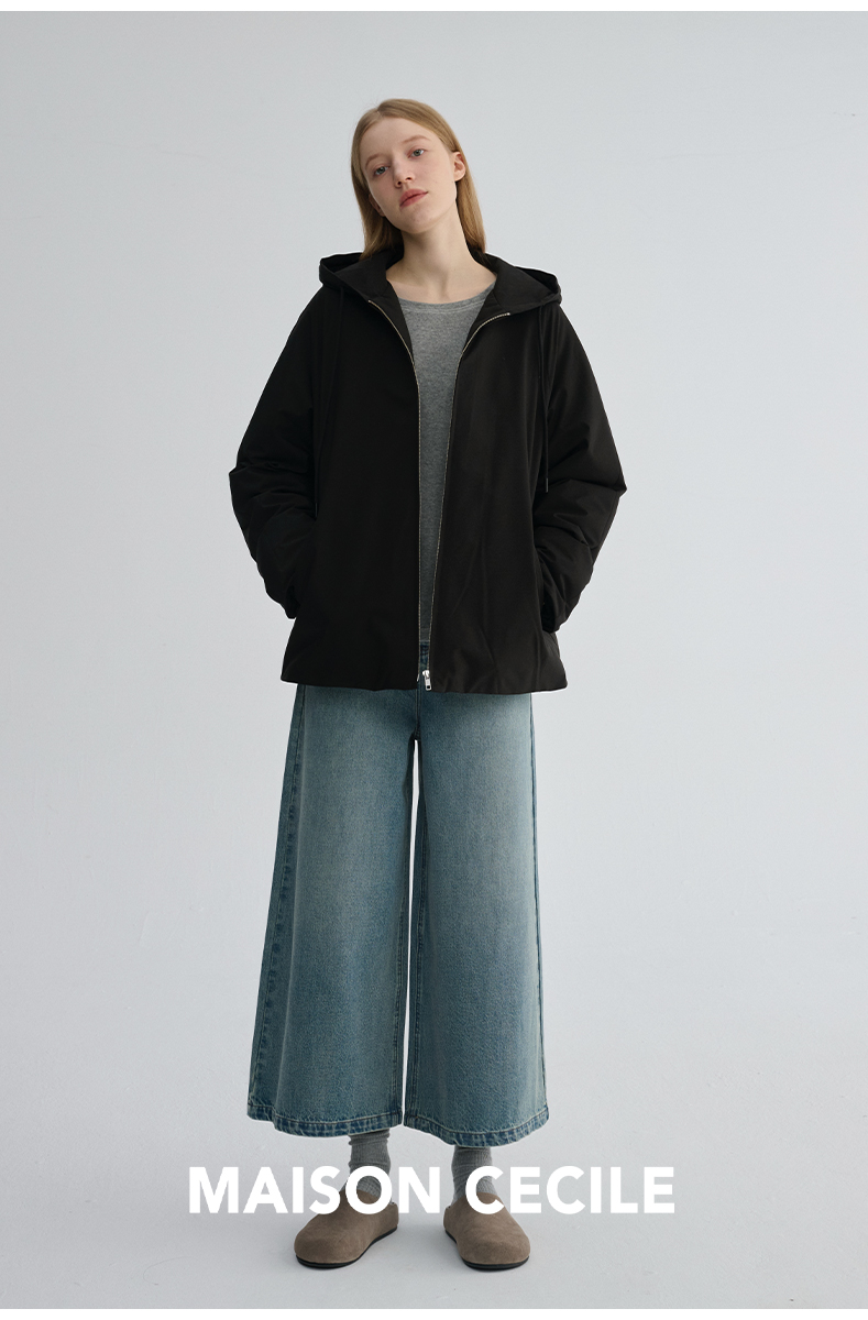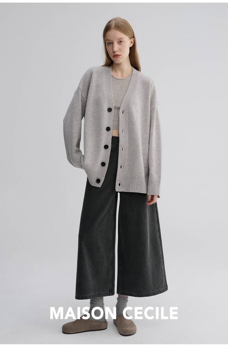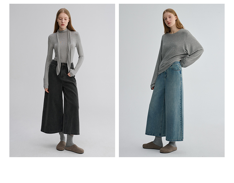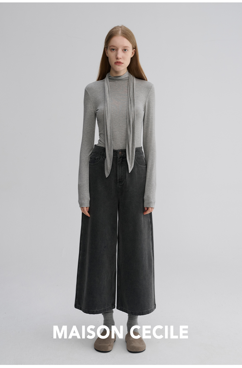 MAISON CECILE 宽松量感大裤腿休闲复古松弛感做旧牛仔八分裤