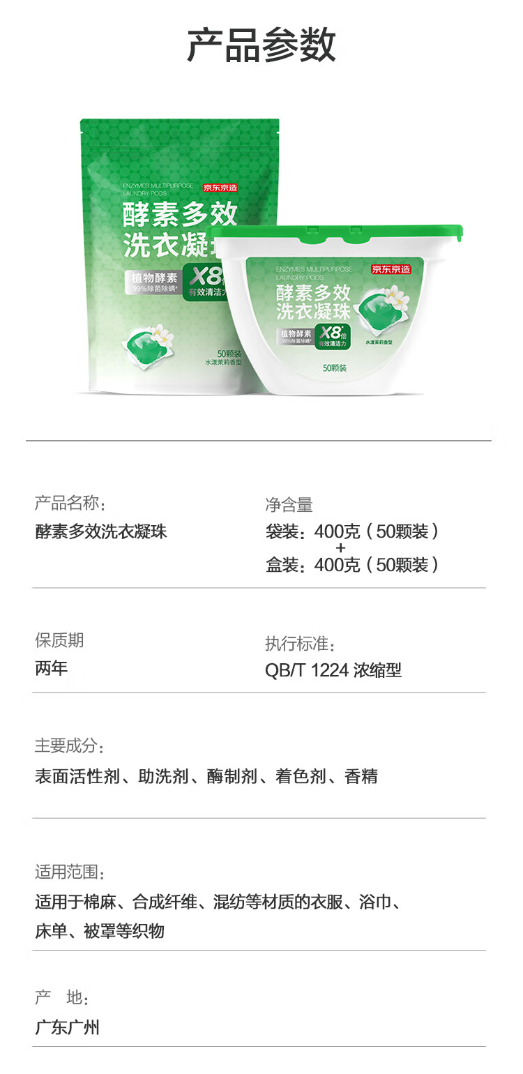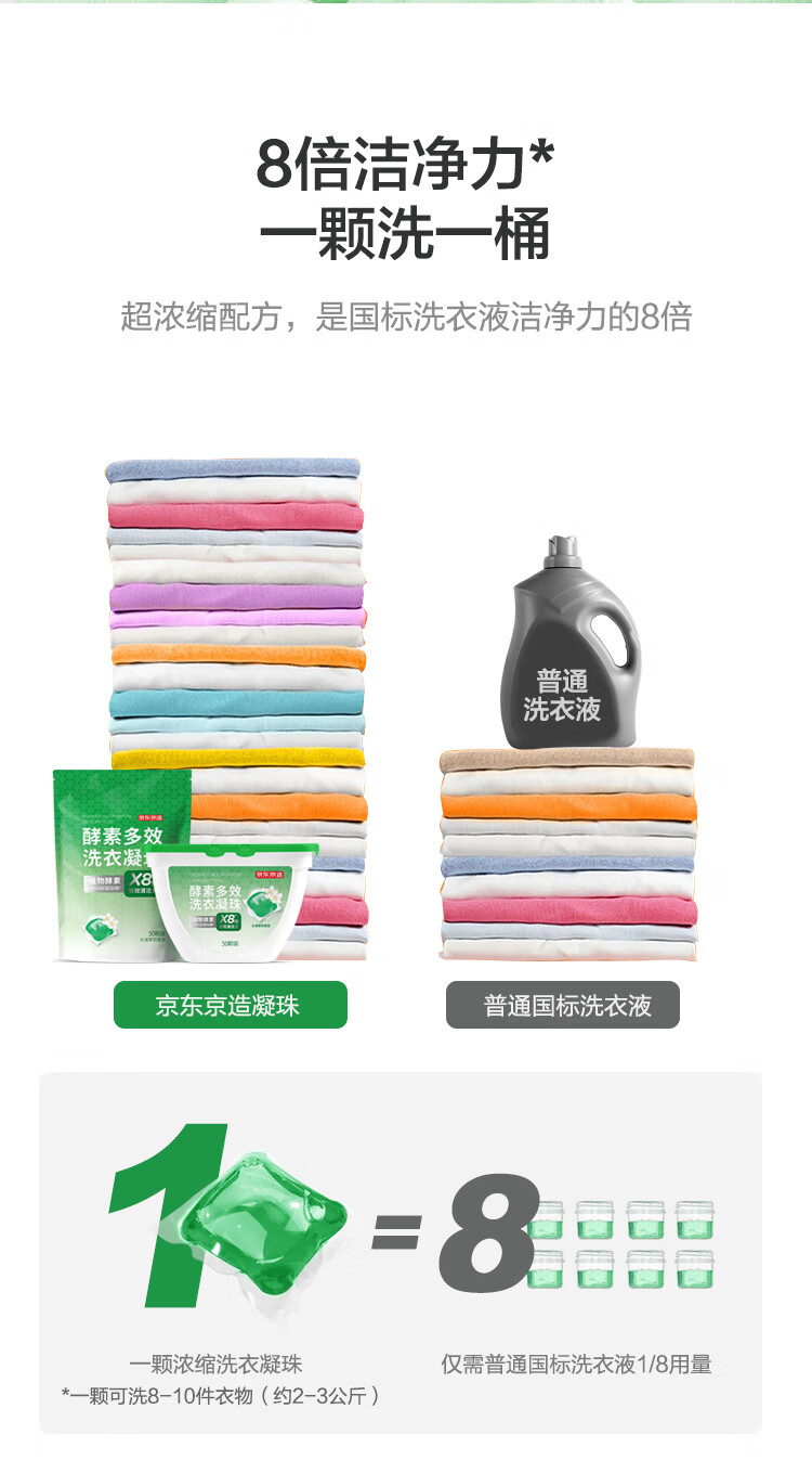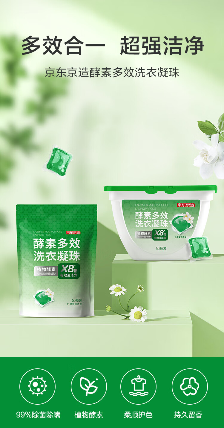 京东京造 酵素洗衣凝珠100颗(50颗/盒+50颗/袋)99%除菌除螨 8倍洁净 浓缩洗衣液 洗衣珠 留香珠 快洗无残留