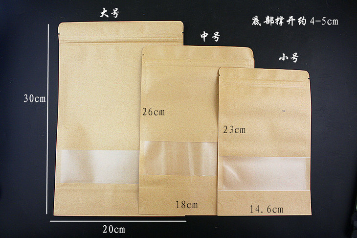 牛皮纸拉链自立袋 大中小三种规格 100个/捆 干果点心茶叶包装袋