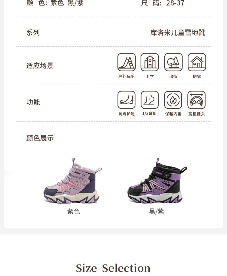 hellokitty童鞋冬季库洛米儿童雪地靴28-37码 KU5546961