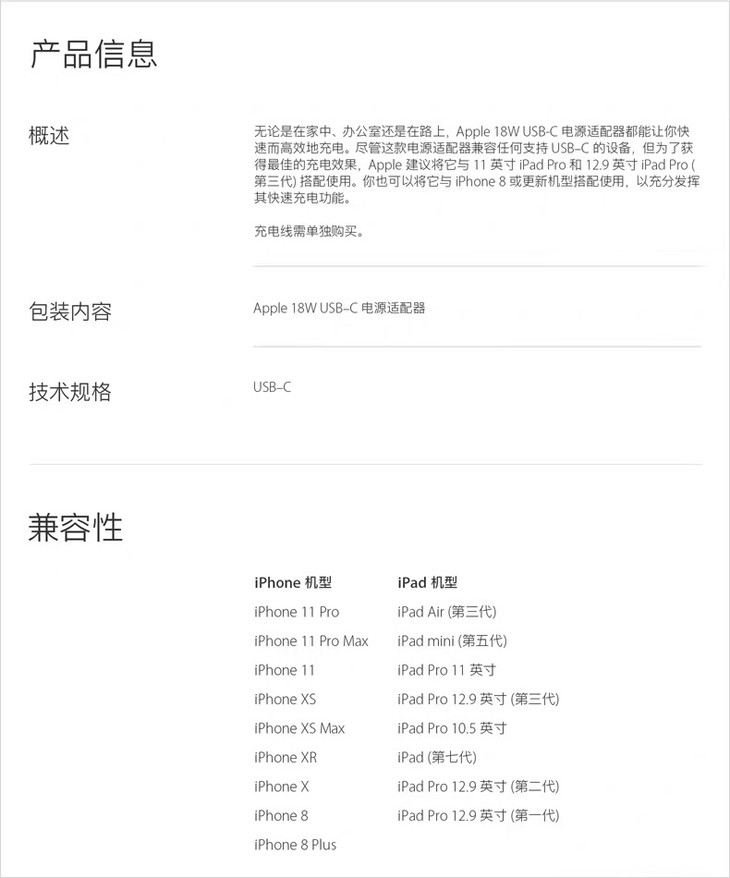 苹果USB-C18W电源适配器