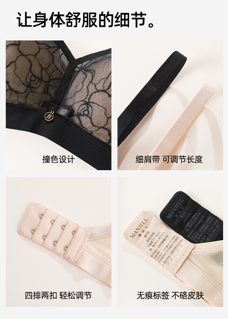 【商场同款】熳洁儿 小胸聚拢法式三角杯文胸提花中厚杯AB通杯24201535