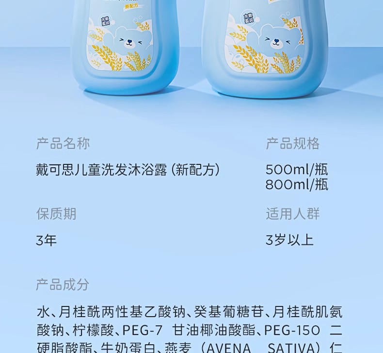 【新生儿可用】戴可思儿童沐浴露洗发露二合一小孩沐浴洗发水宝宝洗护蓝胖子