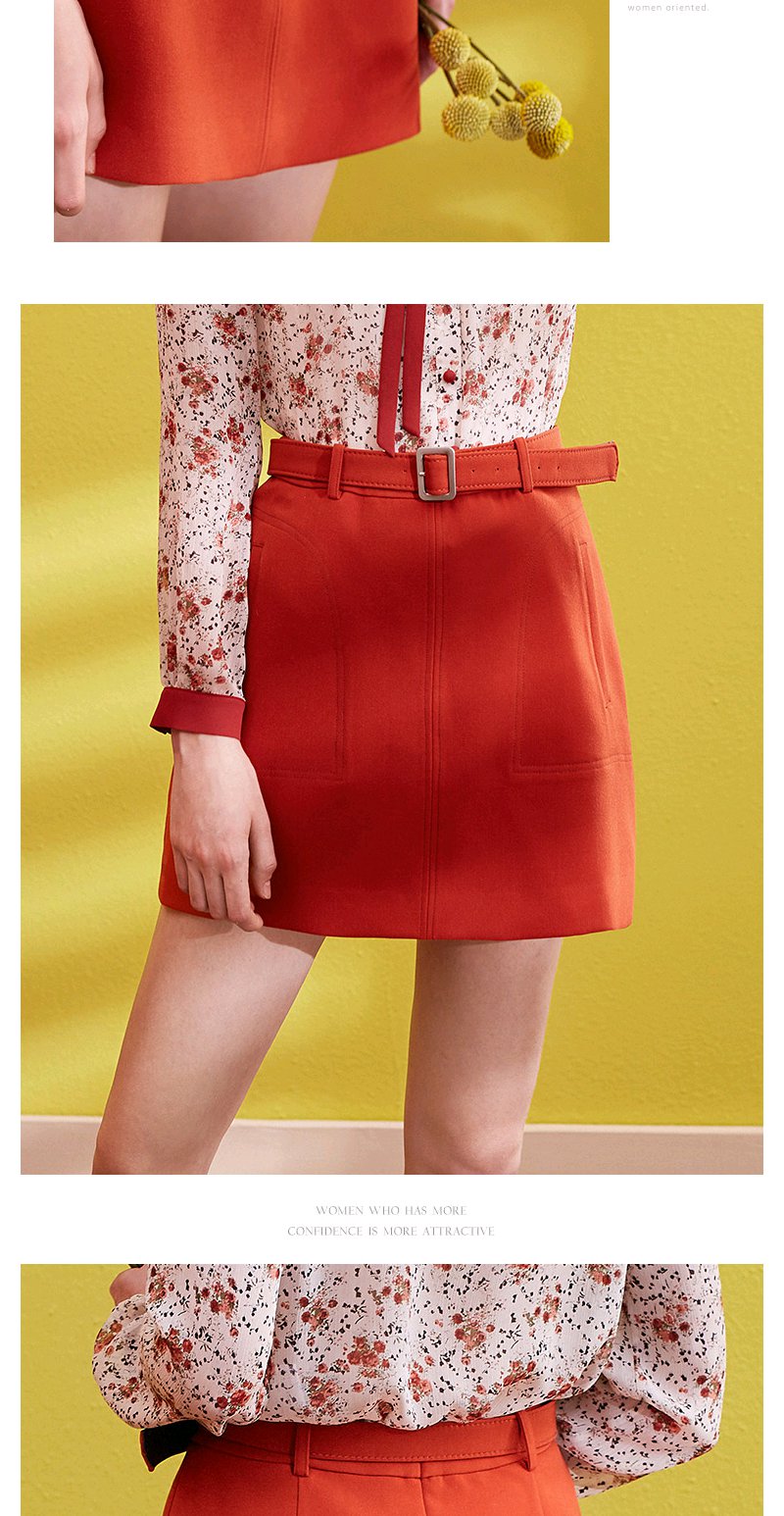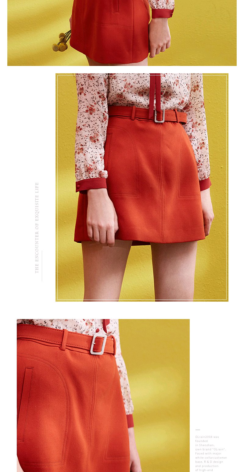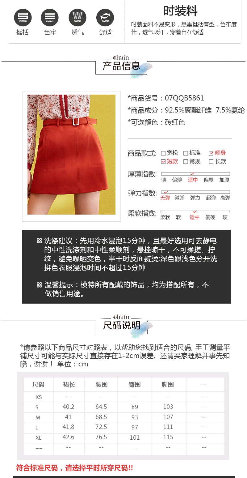 欧芮儿新年红色装女a字裙女短款高腰半身裙女短裙子