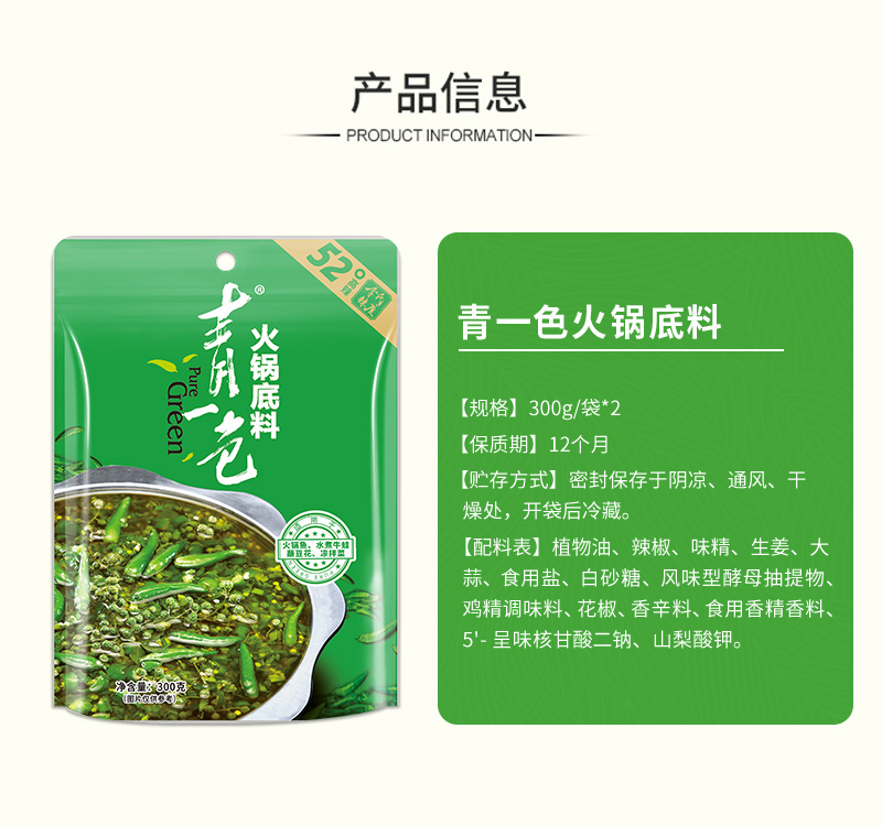 德庄青一色火锅底料52° 300g/袋*2