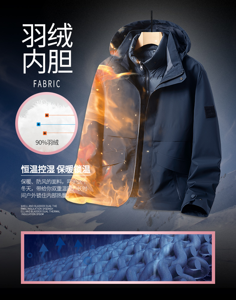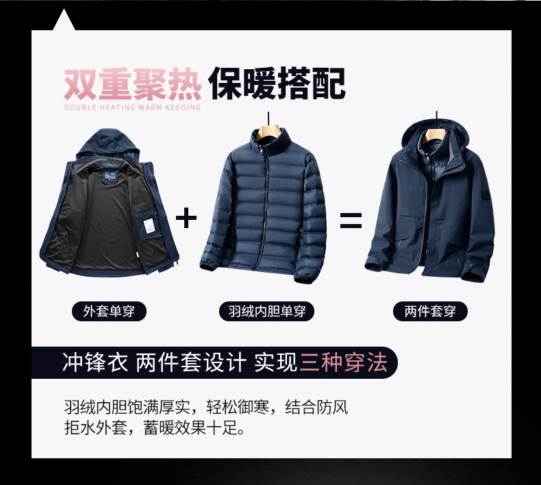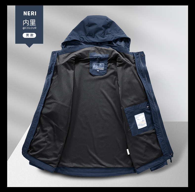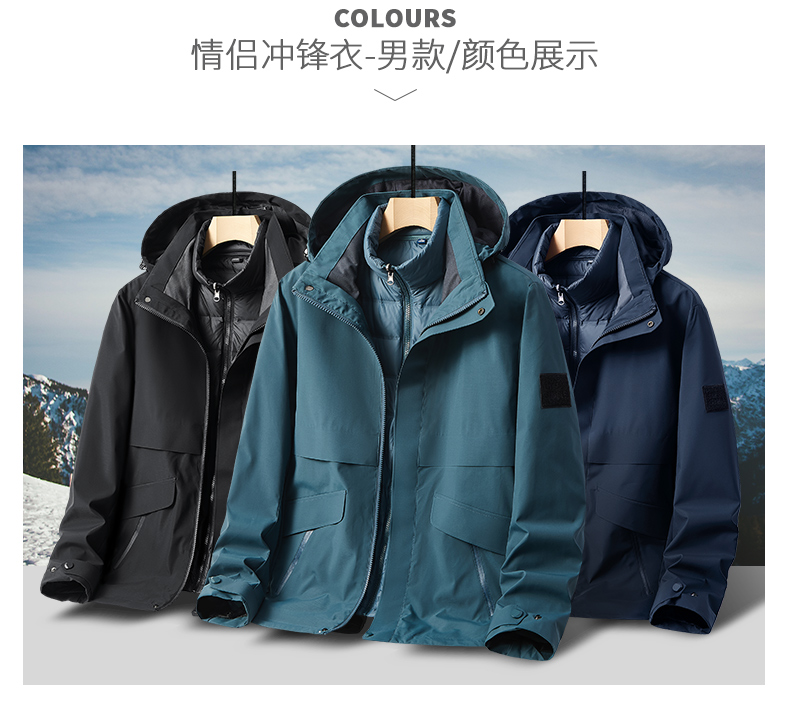 2025秋冬新款情侣时尚三合一羽绒内胆冲锋衣男女款防风防水运动外套BS2016A-T