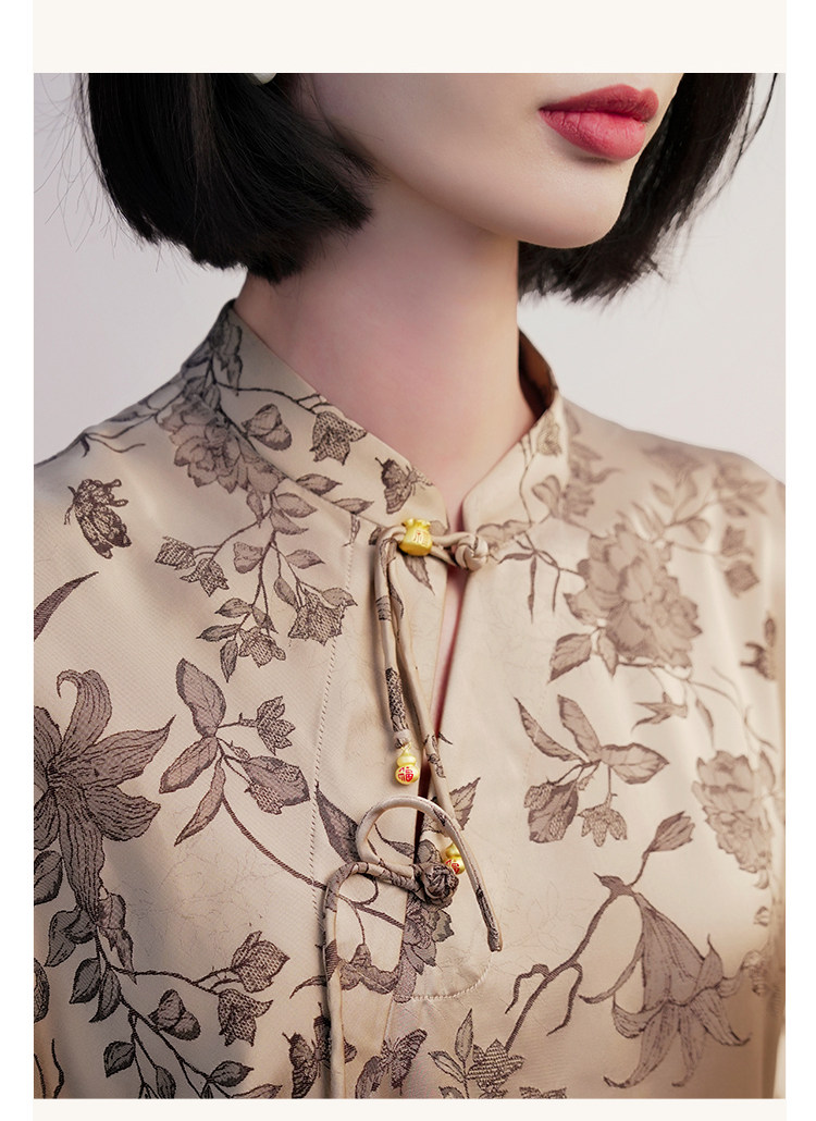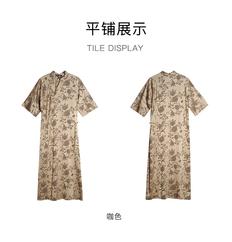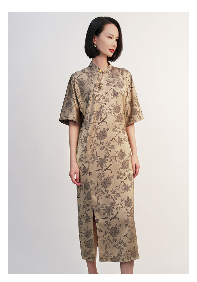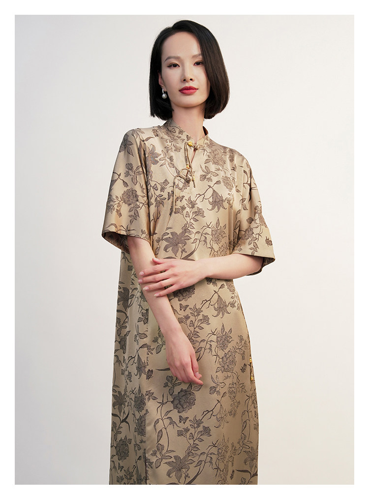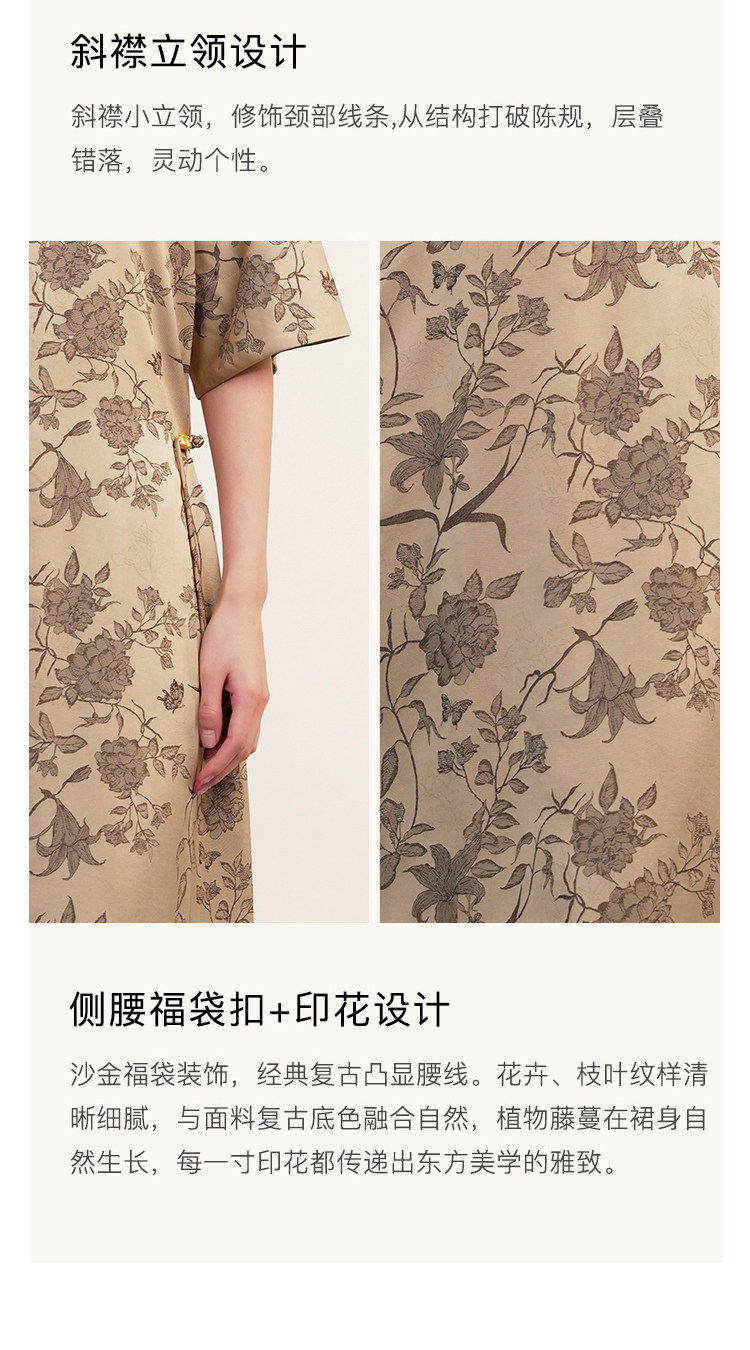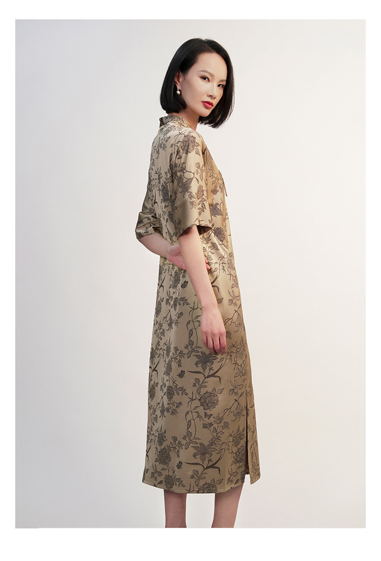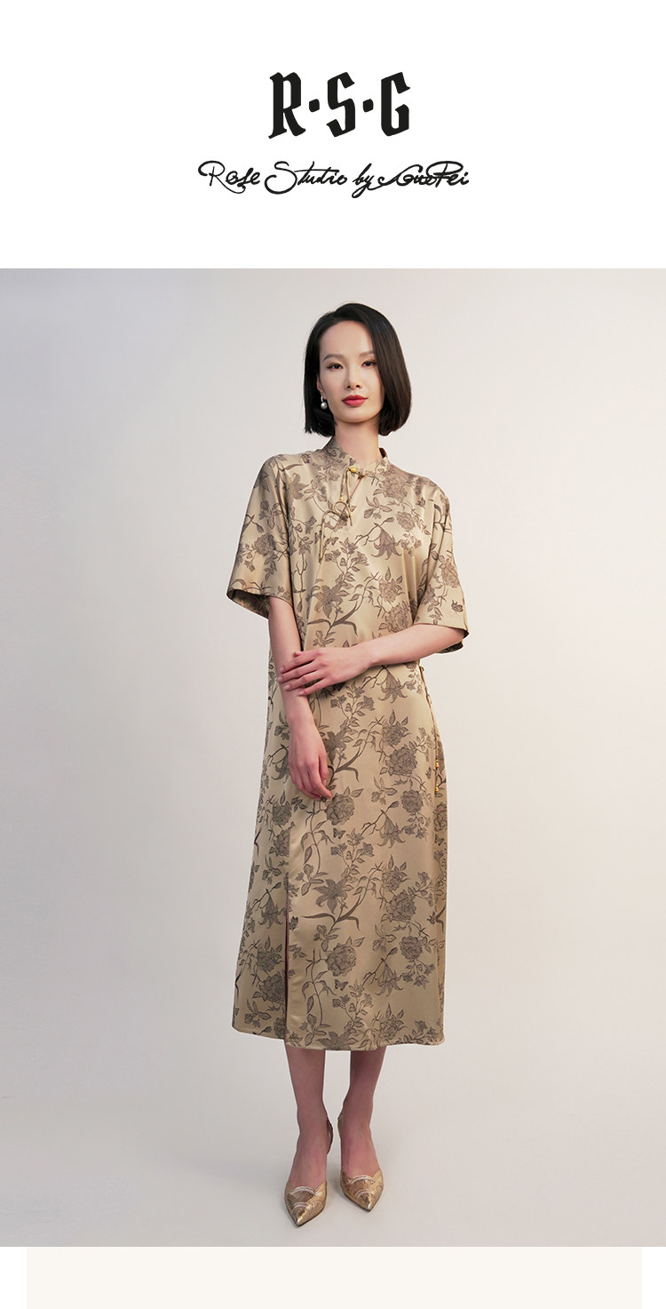 郭培成衣RSG「棕韵花笺」植物印花新中式连衣裙