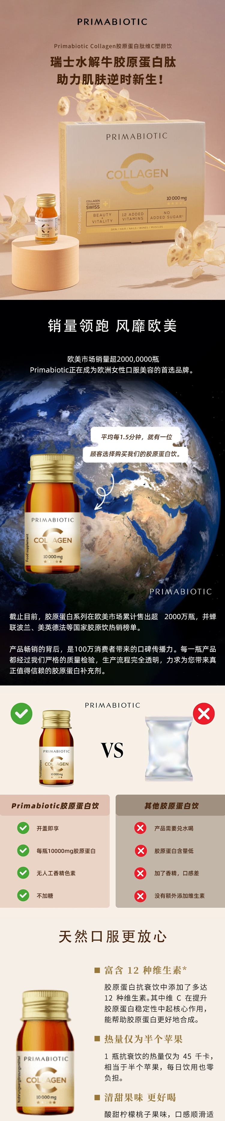 保税直发 PRIMABIOTIC 胶原蛋白肽塑颜饮 30瓶/盒 1盒装/2盒装/3盒装【2个版本包装随机发货】