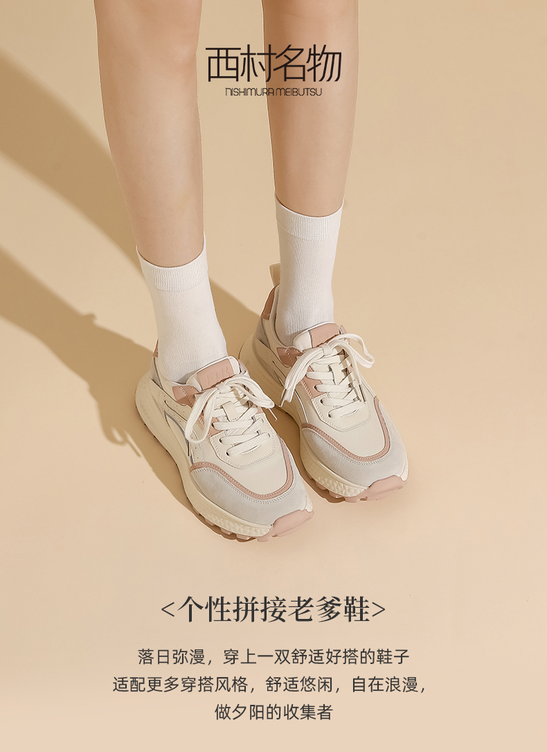 西村名物2023春季新款厚底舒适轻便个性拼接老爹鞋透气运行鞋13011