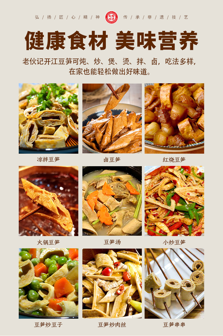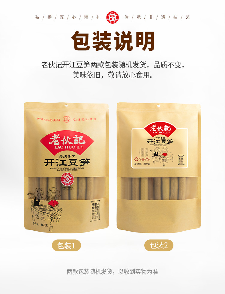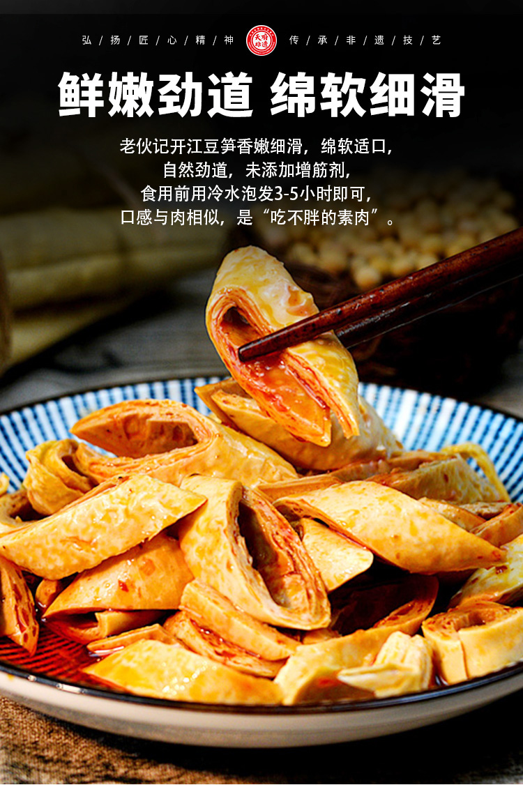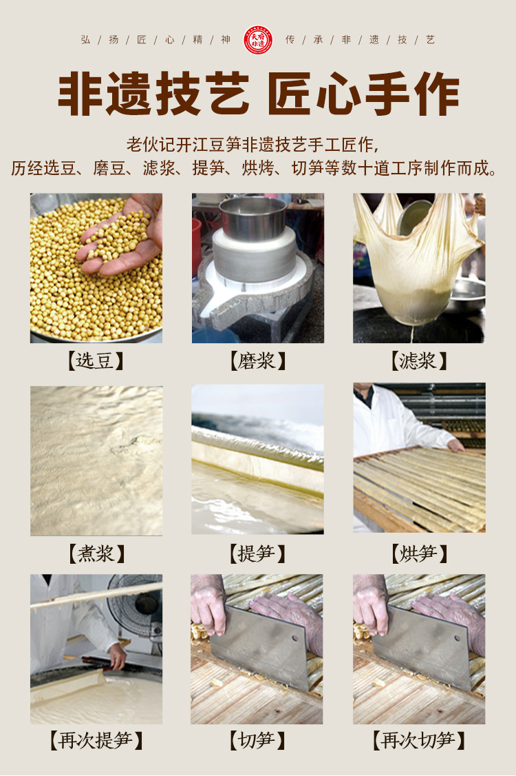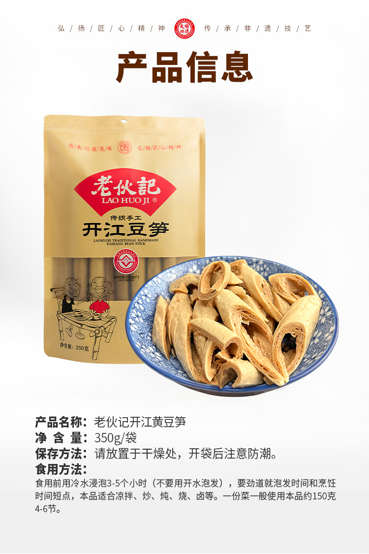 老伙记 手工开江豆笋 【非物质文化遗产】四川名特产 豆棒豆筋豆干豆杆非腐竹 手工豆制品无添加
