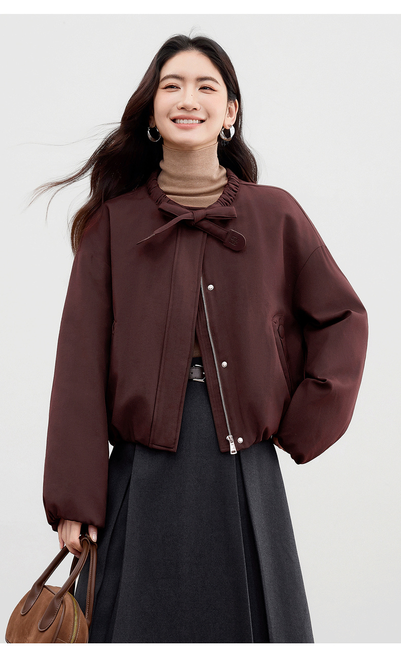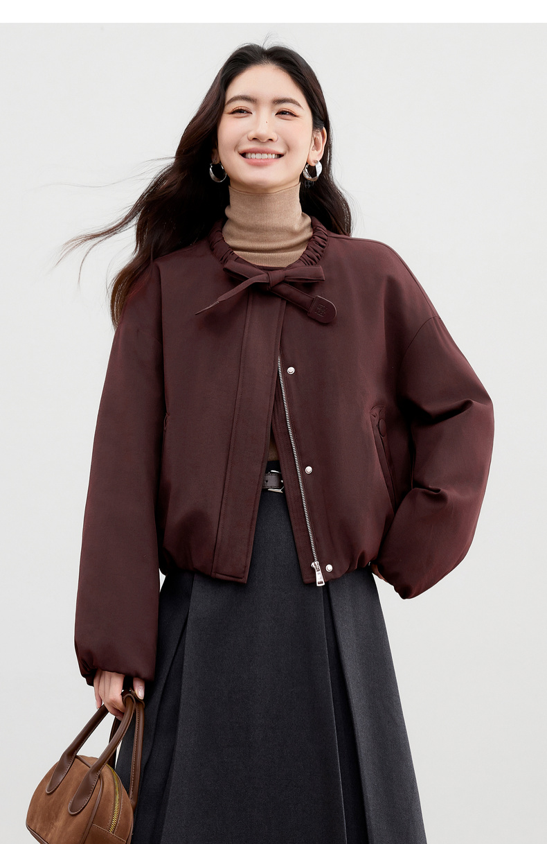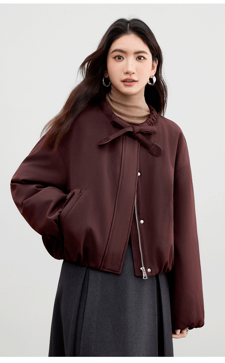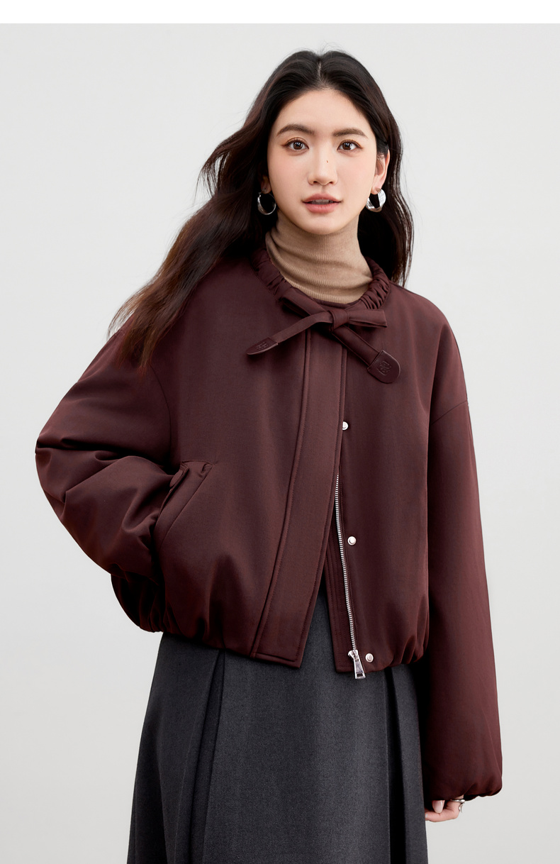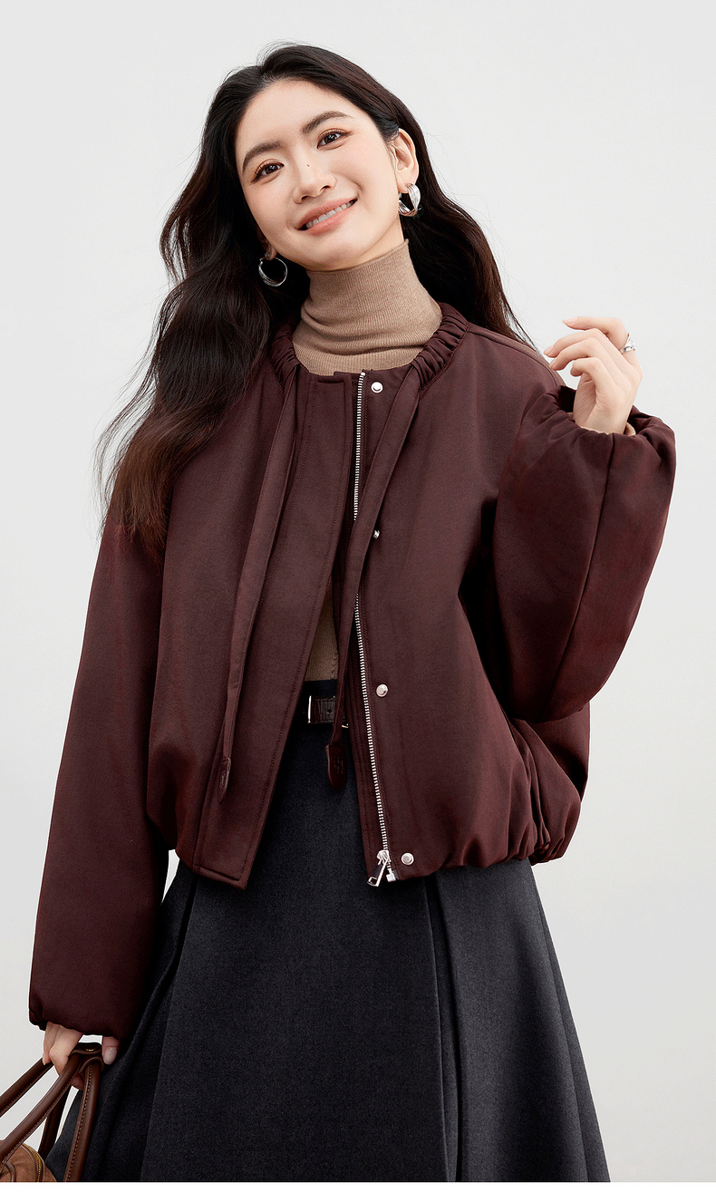 【内购】【90%白鸭绒】小个子通勤隧道式飘带圆领宽松不臃肿短款羽绒服-W54YC2031