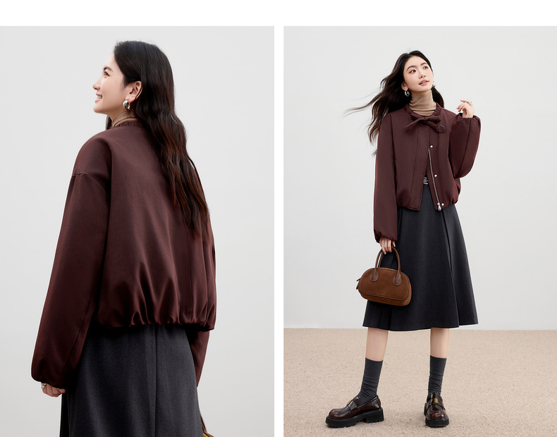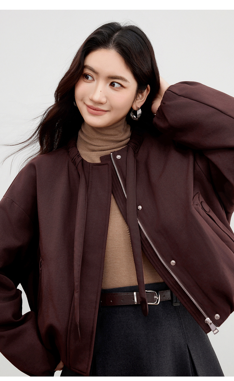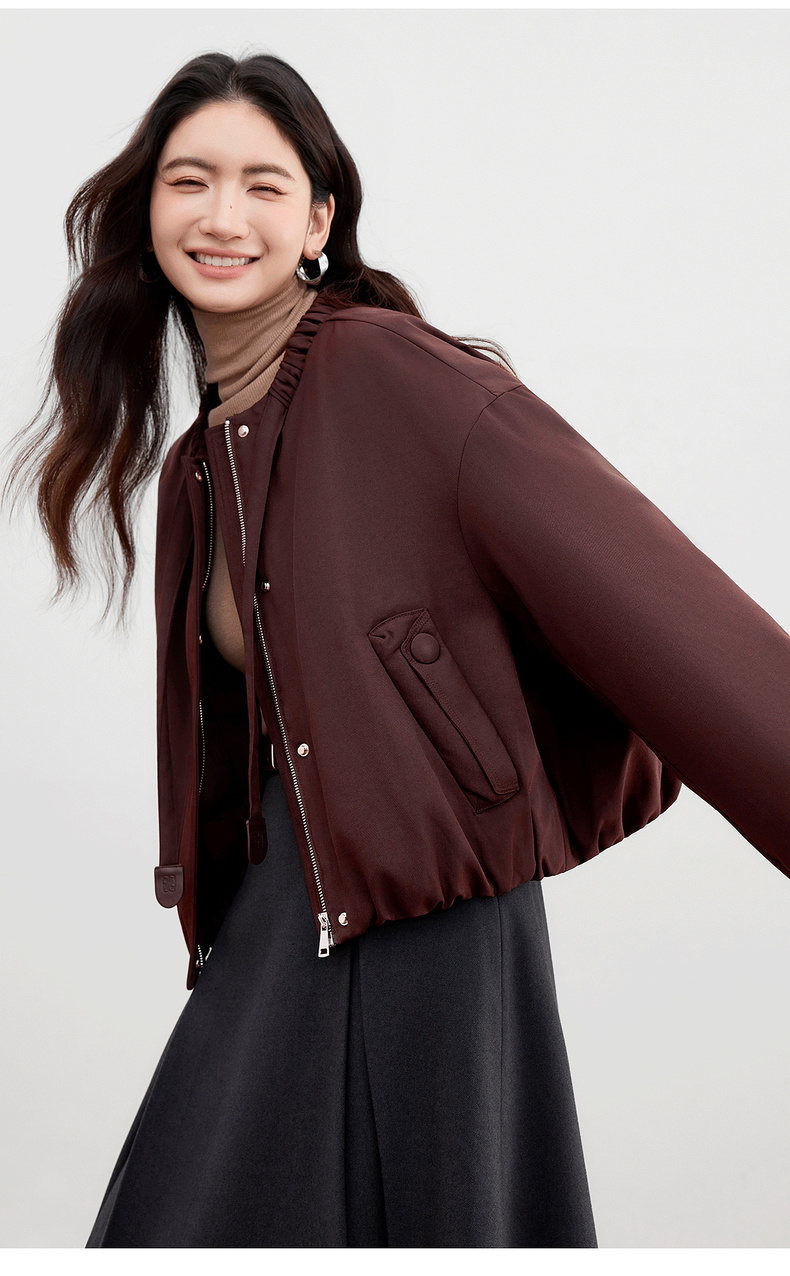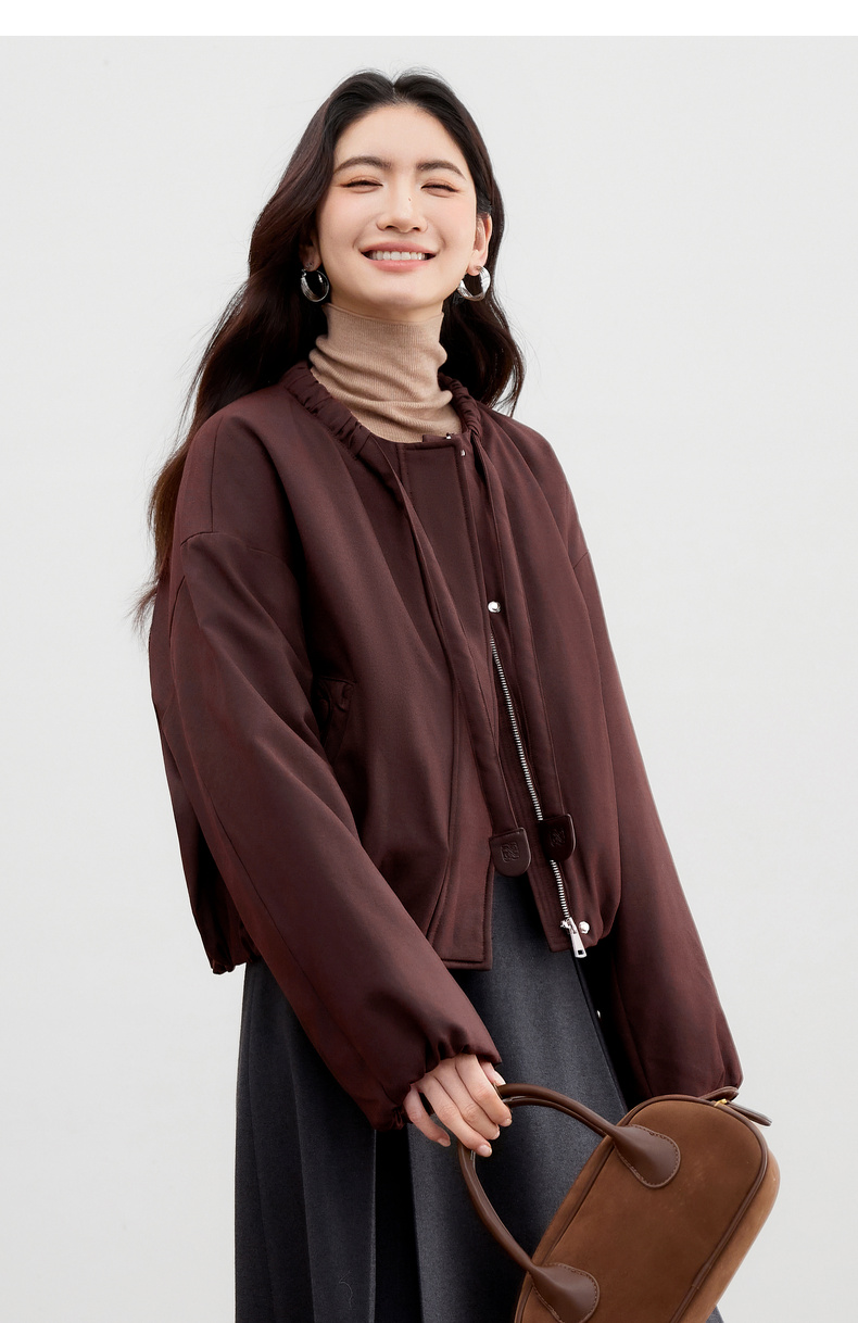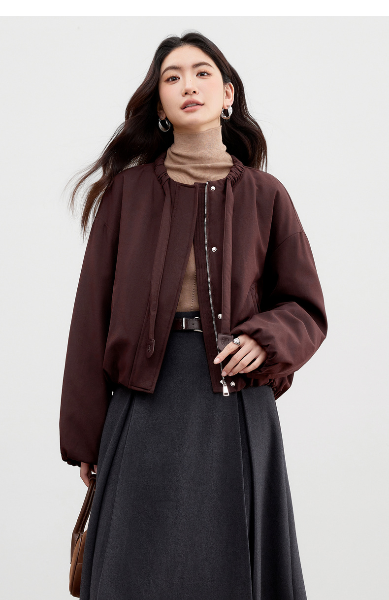 【内购】【90%白鸭绒】小个子通勤隧道式飘带圆领宽松不臃肿短款羽绒服-W54YC2031