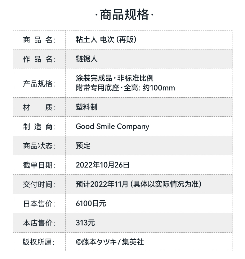 【GSC现货】粘土人 电次(再贩)链锯人 手办模玩