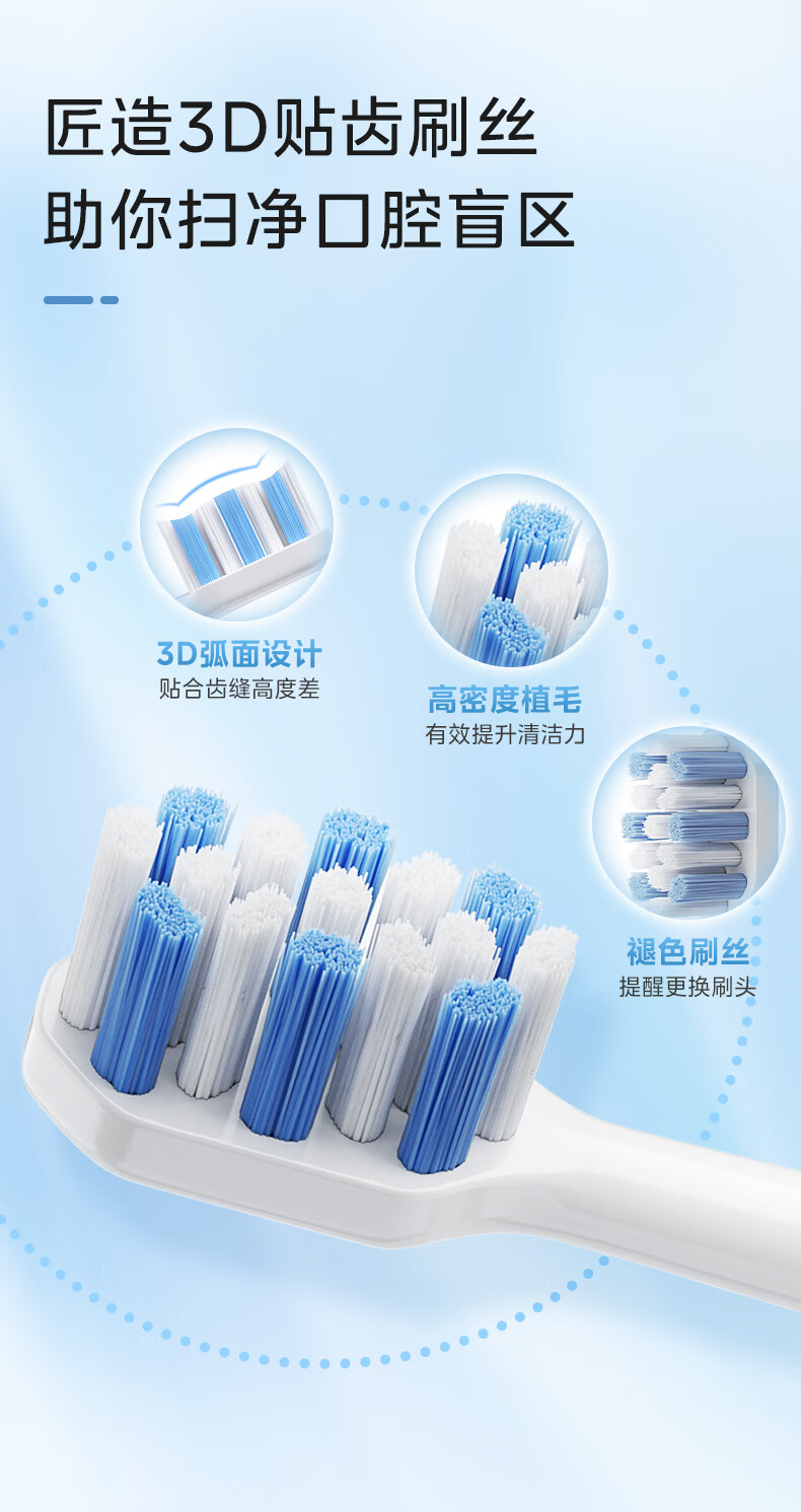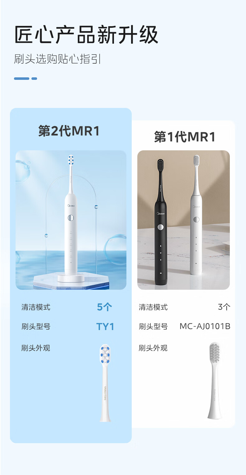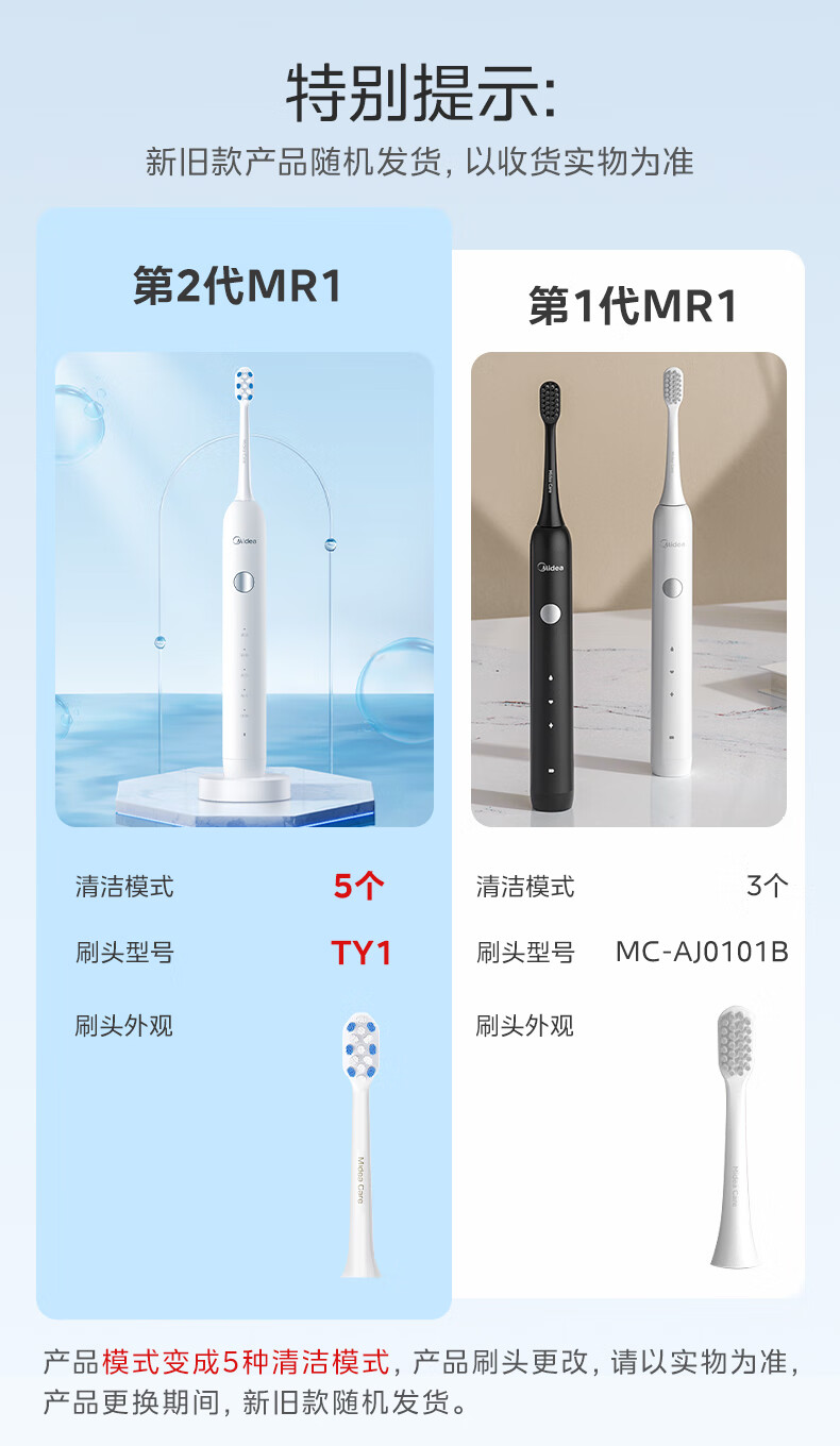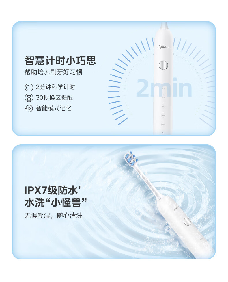 美的(Midea) MC-AJ0101 电动牙刷男女成人软毛声波全自动送礼物 防水感应式充电 2刷头 MR1系列冰川白