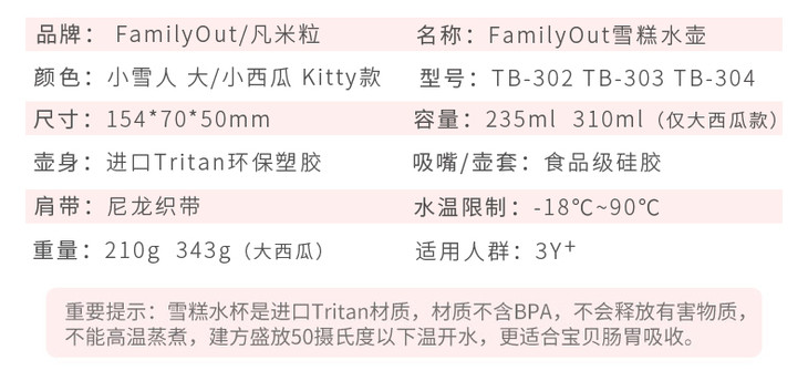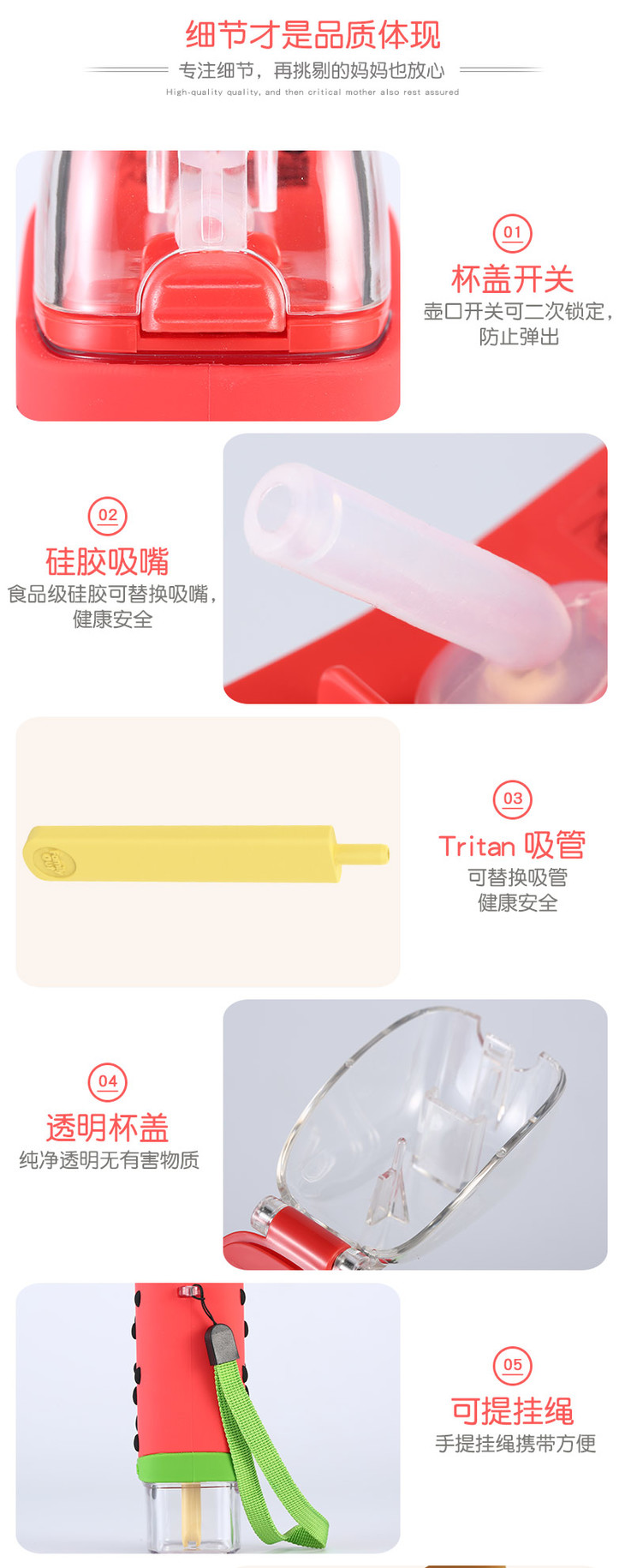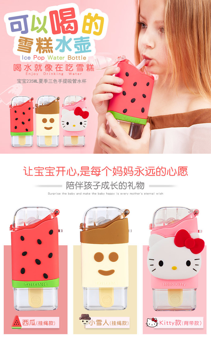 Familyout凡米粒西瓜雪糕儿童吸管水杯宝宝幼儿园夏季冷水壶防漏