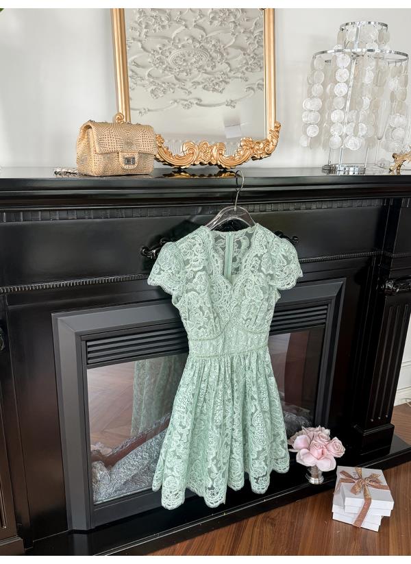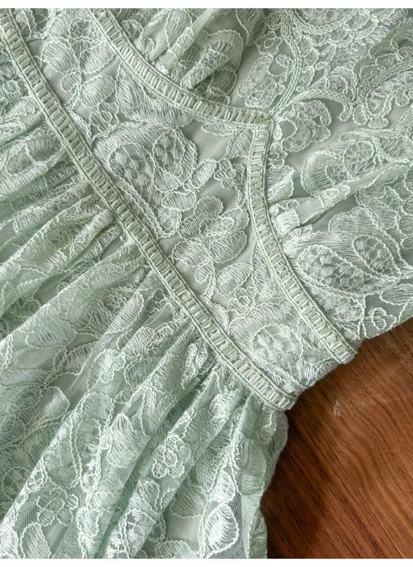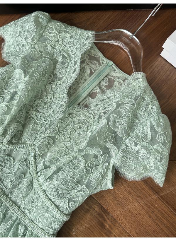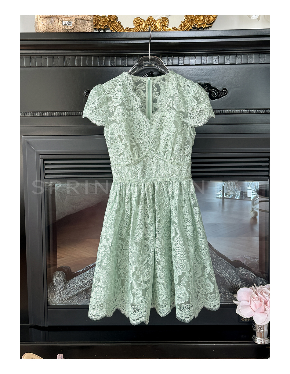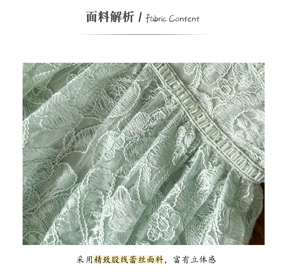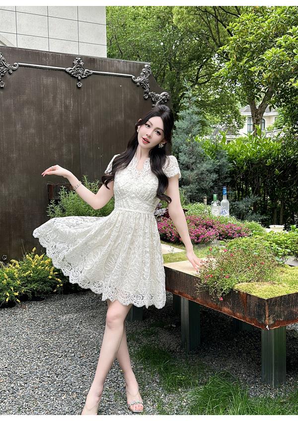 BeQueenStory【浮雕繁花】镂空股线蕾丝法式宫廷风V领收腰连衣裙