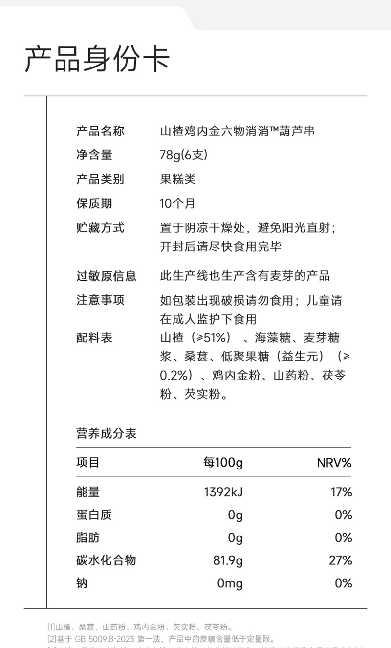 【不二宝贝】牛脾肽鸡内金山楂六物葫芦串(袋装)78g