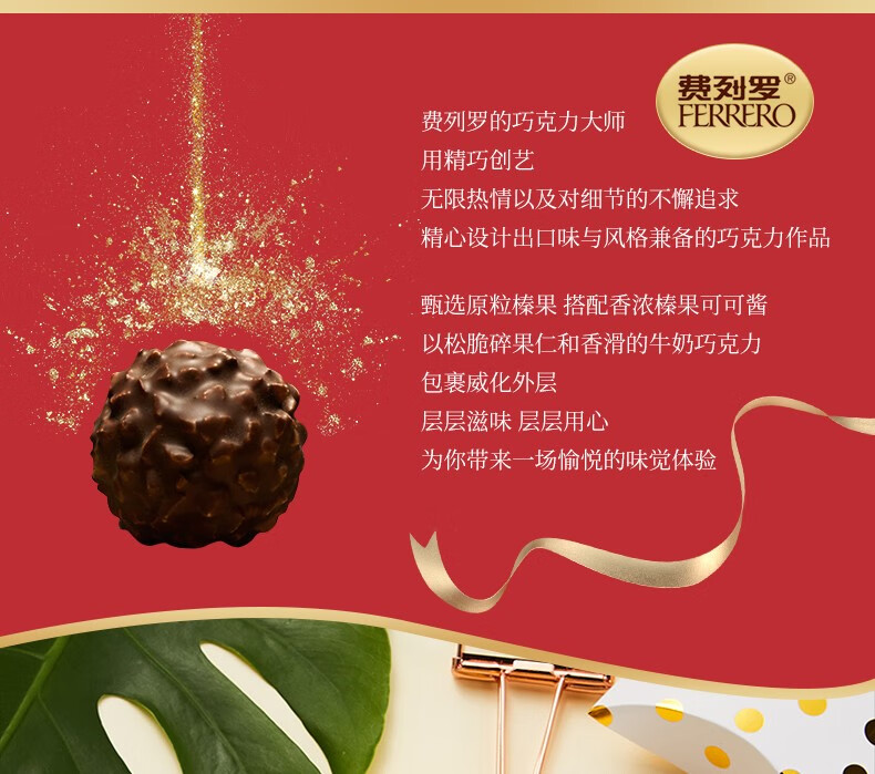 费列罗T16榛果威化巧克力16粒200g