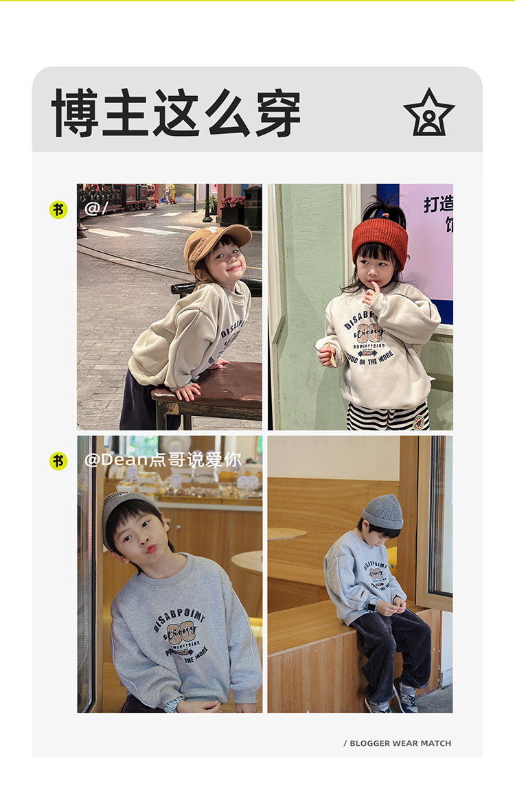 【内里复合奥粒绒】儿童美式复古印花加绒软卫衣PQWY2313