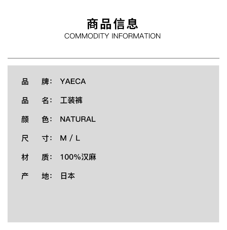 YAECA Work Pants(Man) 男装天然汉麻工装裤
