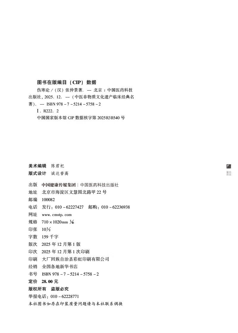 书名:伤寒论(中医非物质文化遗产临床经典名著)