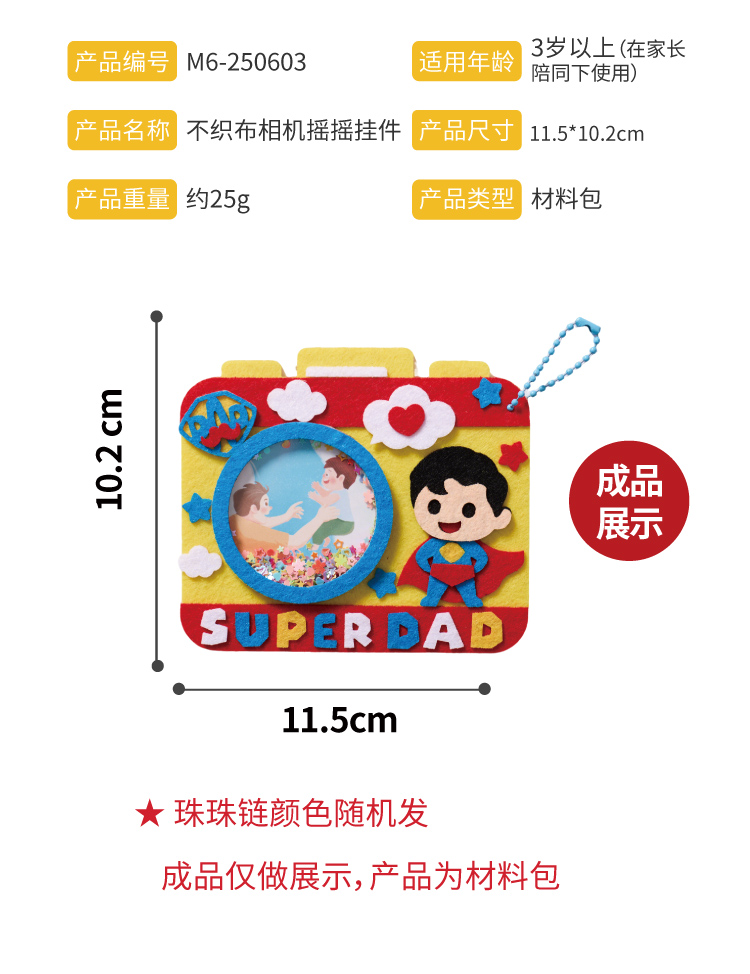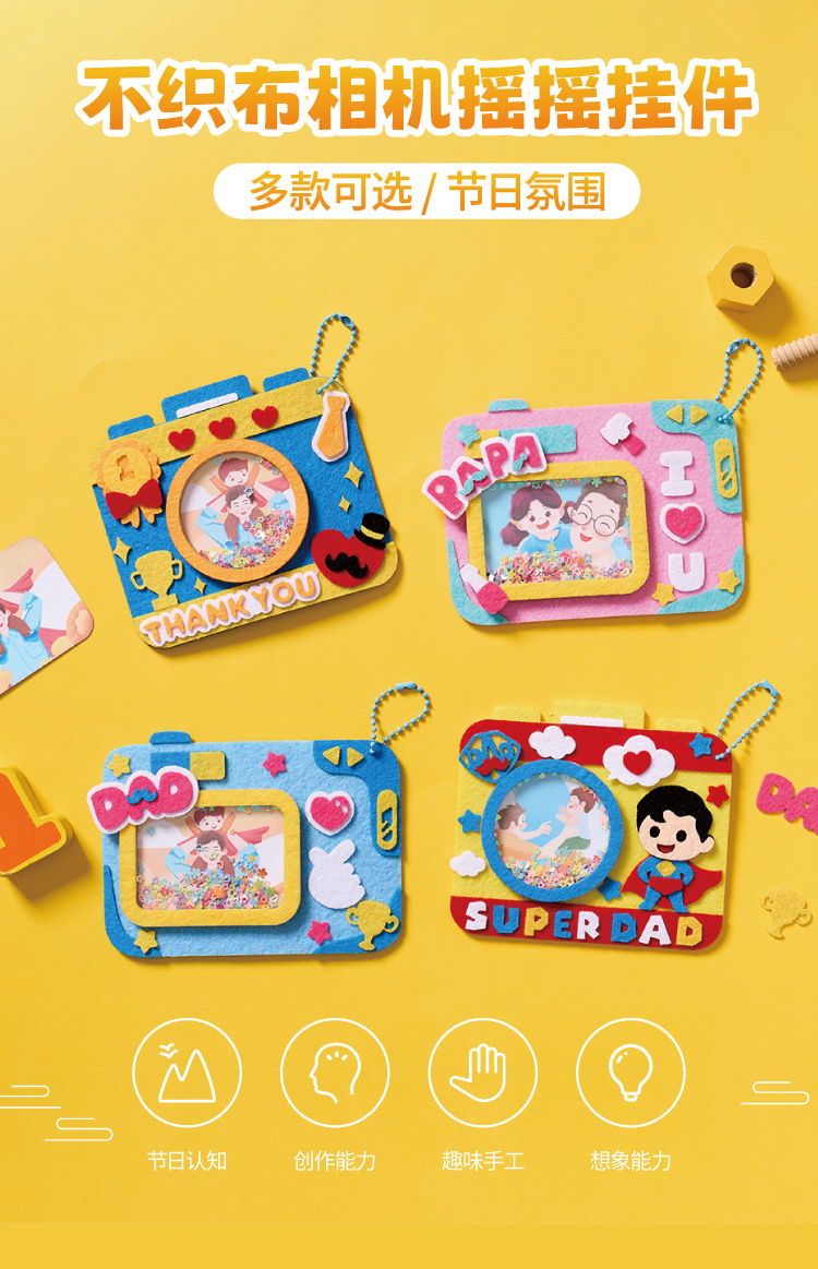 父亲节礼物手工diy不织布相机摇摇挂件儿童制作材料幼儿园送爸爸